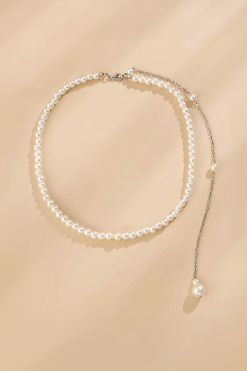 Ένα κόσμημα που αποπνέει ρομαντισμό και αρχοντιά! Το λευκό κολιέ-πλάτης με σειρές από faux πέρλες στο μπροστινό μέρος και λεπτή αλυσίδα με πέρλες που καταλήγει χαμηλά στην πλάτη, είναι το απόλυτο αξεσουάρ για εμφανίσεις με ανοιχτή πλάτη. Φοριέται εύκολα χάρη στο ρυθμιζόμενο κούμπωμα και προσδίδει μια εκλεπτυσμένη πινελιά σε κάθε outfit.