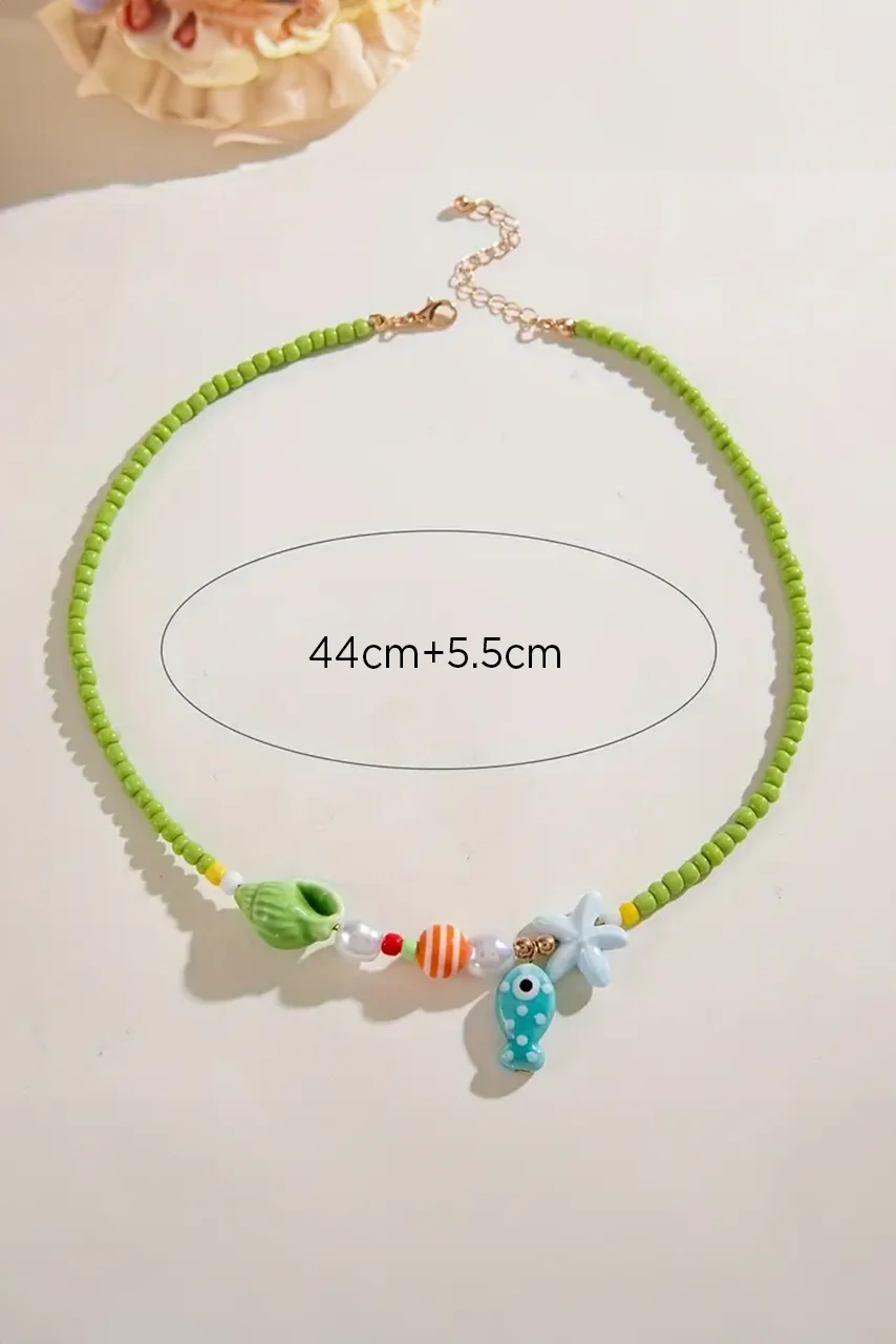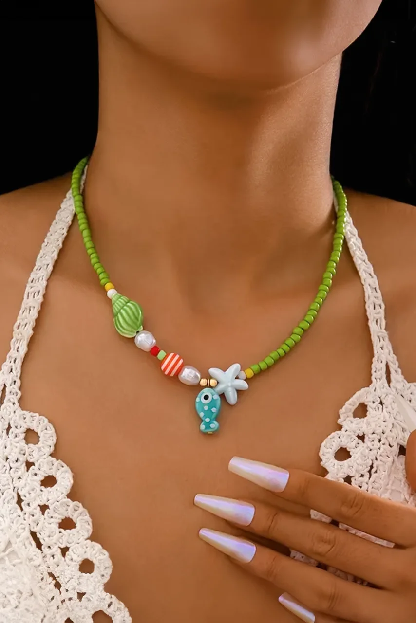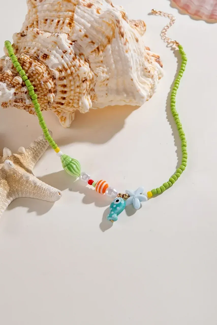 Κολιέ με πράσινες χάντρες και καλοκαιρινά charms