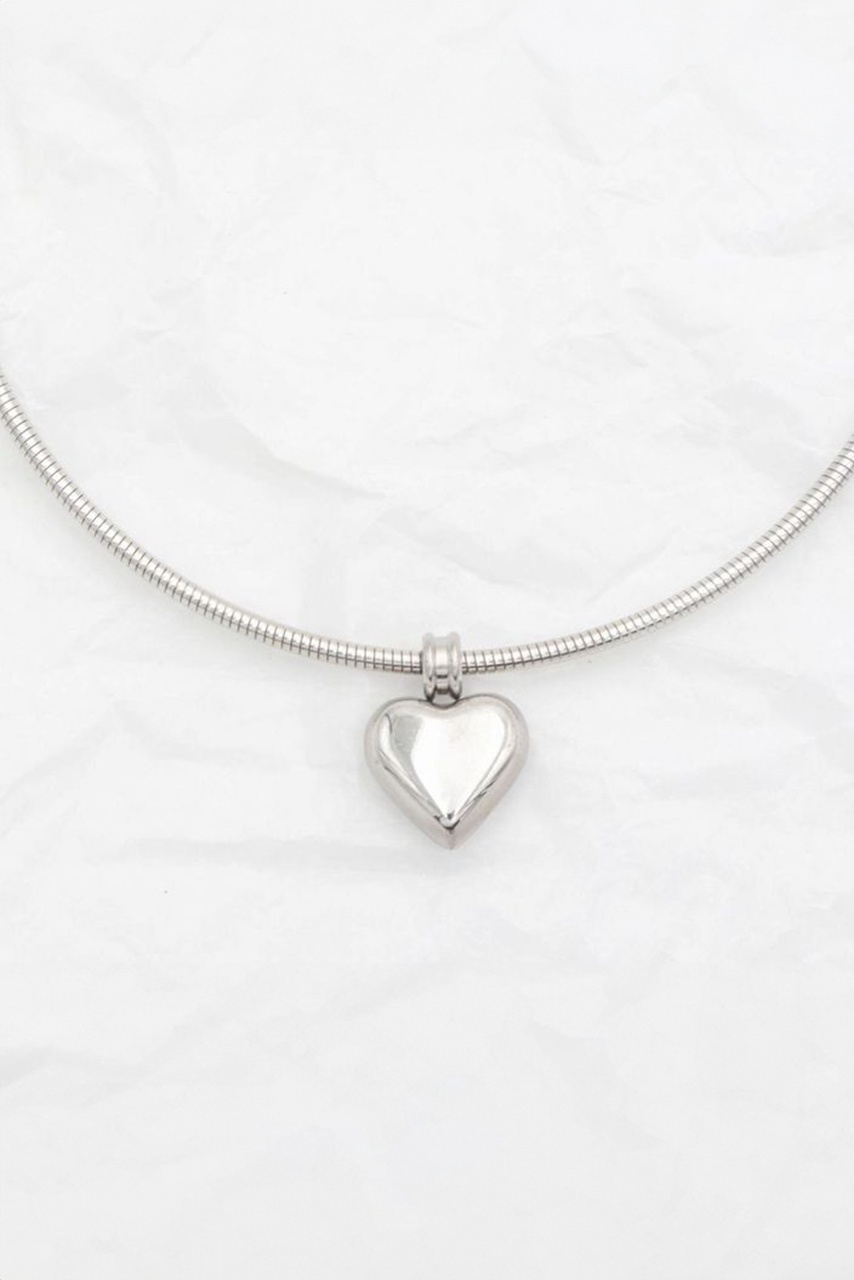 Ρομαντικό ατσάλινο κολιέ με χοντρή αλυσίδα και μεγάλη κρεμαστή καρδιά.