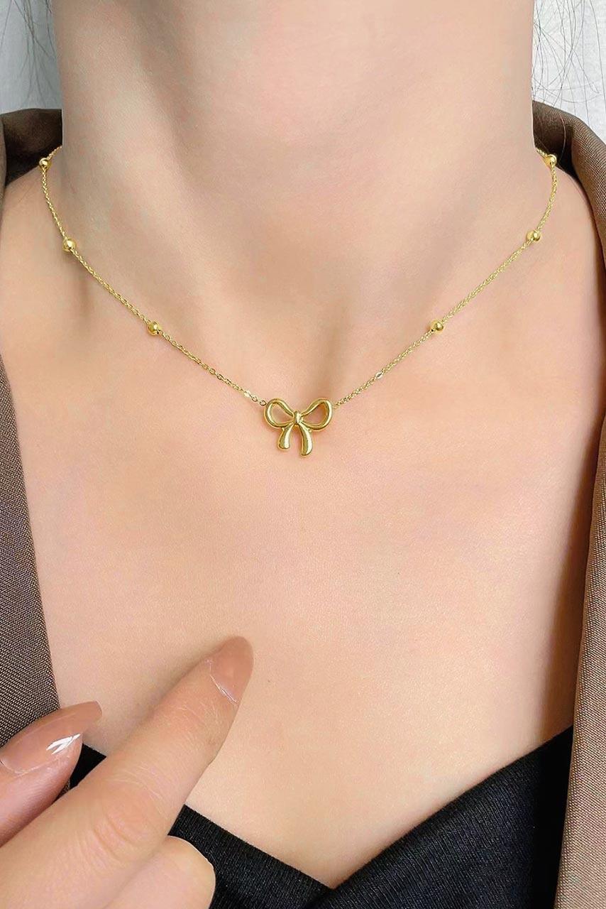 • Χρυσό κολιέ με φιόγκο | Με ρυθμιζόμενο κούμπωμα πίσω.