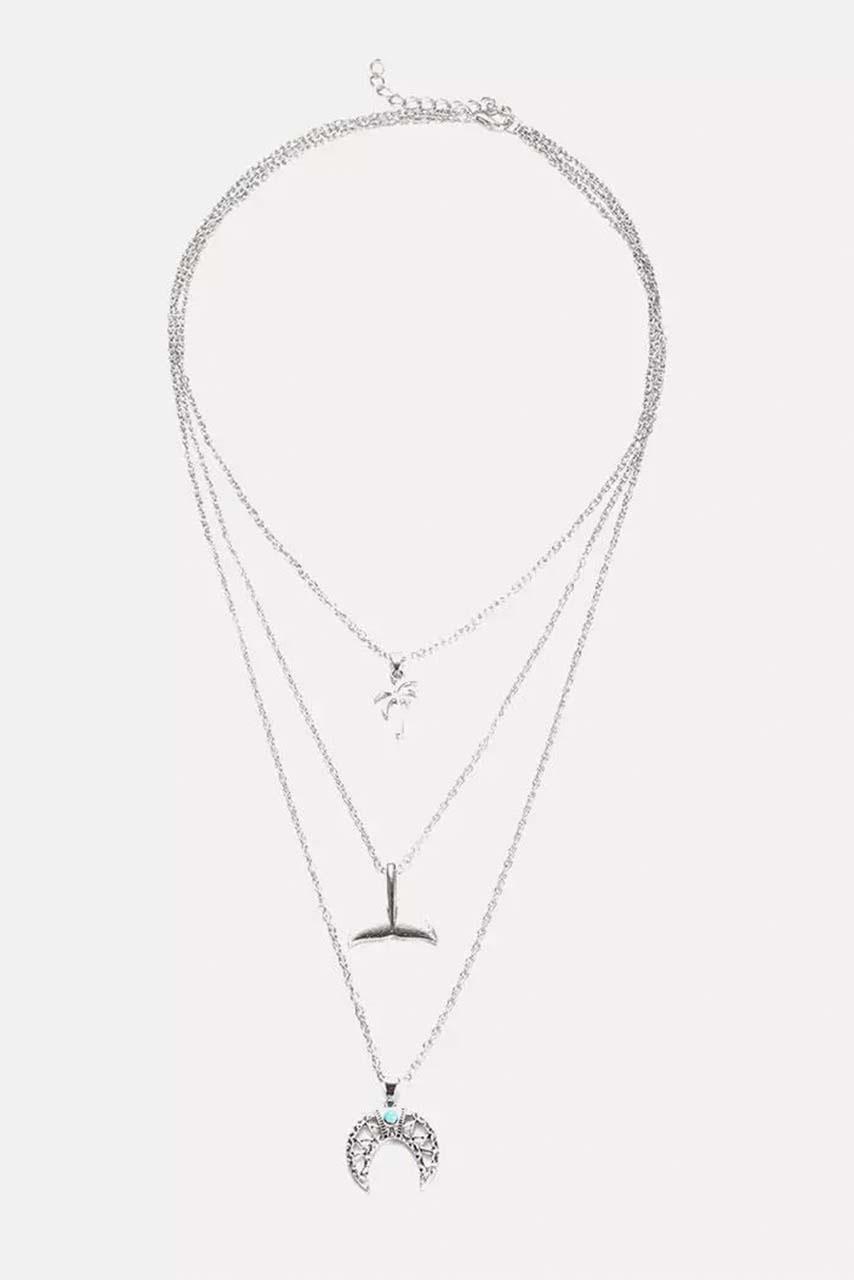 Το κολιέ που θα πετύχετε το απόλυτο καλοκαιρινό layering. Τριπλό σετάκι σε χρυσή απόχρωση με διακοσμητικά κρεμαστά στοιχεία. Μπορείτε να το φορέσετε τα πρωινά στην παραλία αλλά και στις βραδινές σας εξόδους.