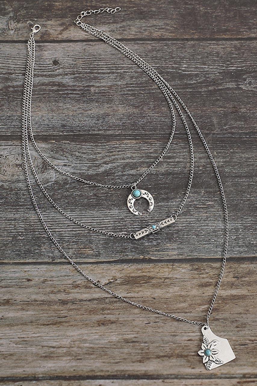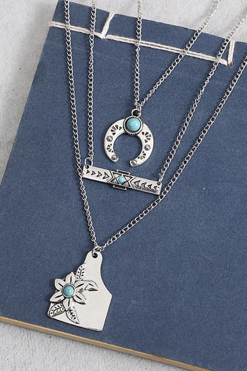 Το κολιέ που θα πετύχετε το απόλυτο Vintage look. Τριπλό σετάκι σε ασημί απόχρωση με διακοσμητικά κρεμαστά στοιχεία. Μπορείτε να το φορέσετε τα πρωινά στην παραλία αλλά και στις βραδινές σας εξόδους.