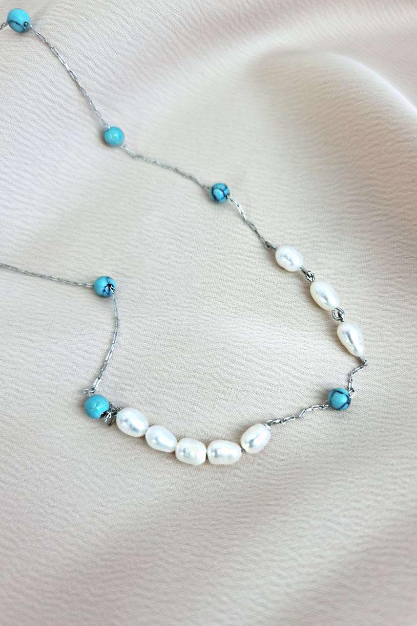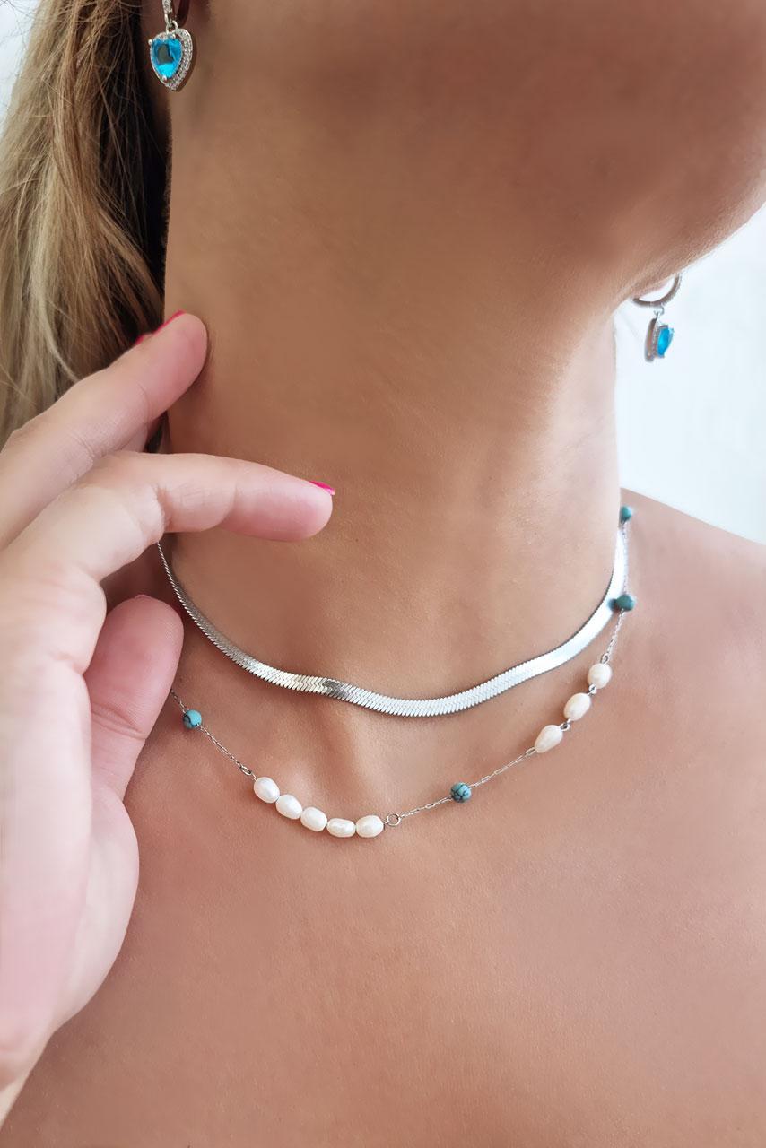 Hippie κολιέ με πέτρες σε λευκό και τιρκουάζ χρώμα. Συνδυάστε το με την Ασημένια snake chain και δαχτυλίδια με τιρκουάζ πέτρες για πιο ολοκληρωμένο boho hippie look!