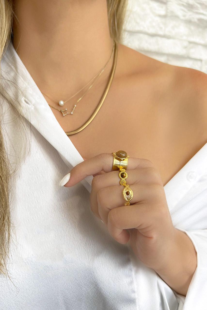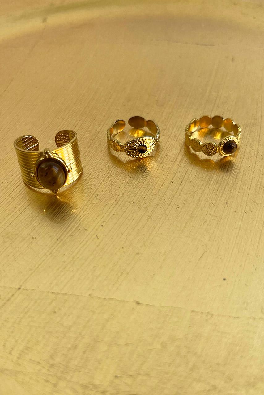 Σετ faux χρυσά δαχτυλίδια με πέτρες σε απαλές αποχρώσεις και δυνατότητα αυξομείωσης. Συνδυάστε τα με την αλυσίδαΧρυσή snake chain και με το Σετ βραχιόλια βέργες για πιο boho hippie look!