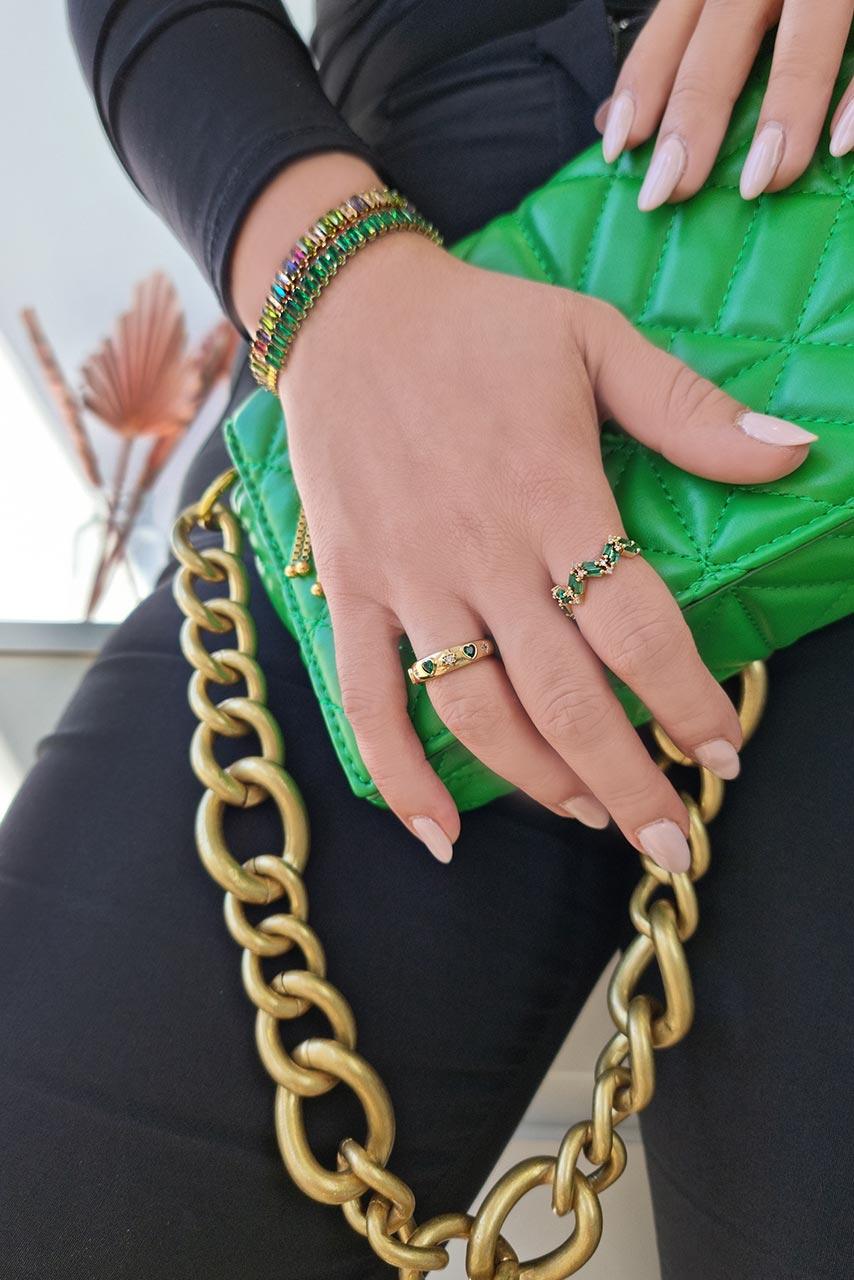 Χρυσά δαχτυλίδια με πράσινες λεπτομέρειες