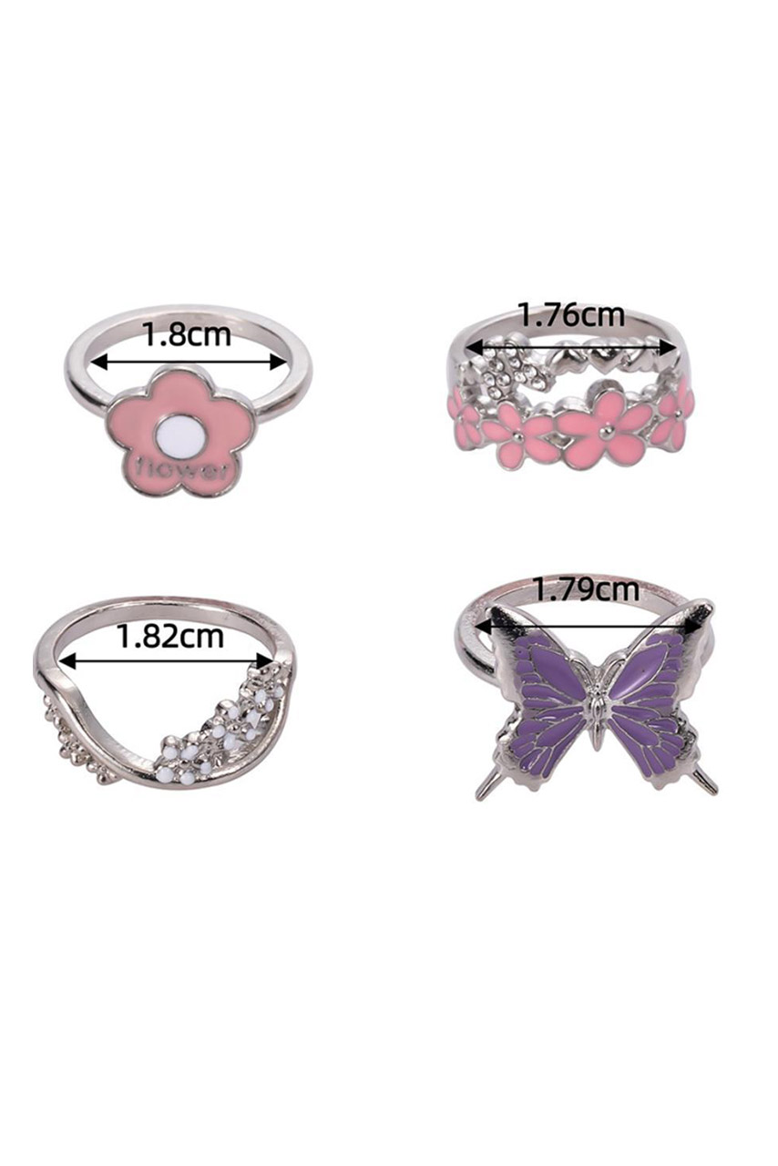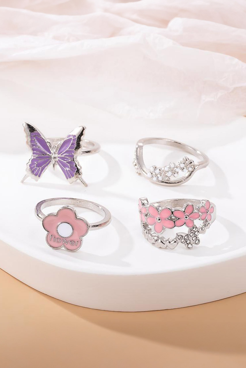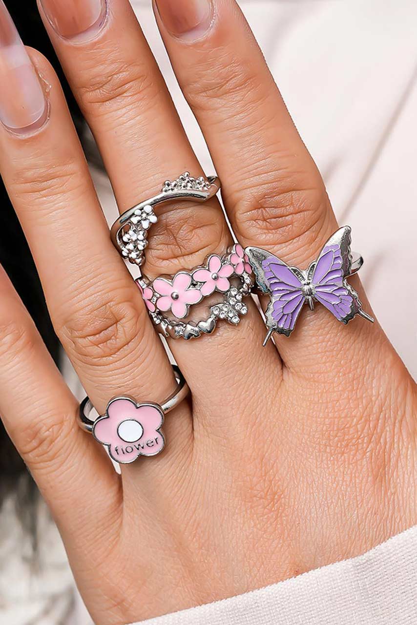 Φέρνεις χρώμα και χαρά σε κάθε σου outfit με αυτό το super cute σετ δαχτυλιδιών! Με έμπνευση από τα Y2K trends, το σετ περιλαμβάνει 4 ασημί δαχτυλίδια με εντυπωσιακά σχέδια – ροζ λουλούδια, μικρές λευκές μαργαρίτες, fun flower graphic και μια μοβ πεταλούδα που μαγνητίζει τα βλέμματα. Τα έντονα χρώματα και τα παιχνιδιάρικα σχέδια τα καθιστούν ιδανικά για mix & match layering, δίνοντας μια νεανική, fashionable πινελιά ακόμα και στο πιο basic σύνολο.
