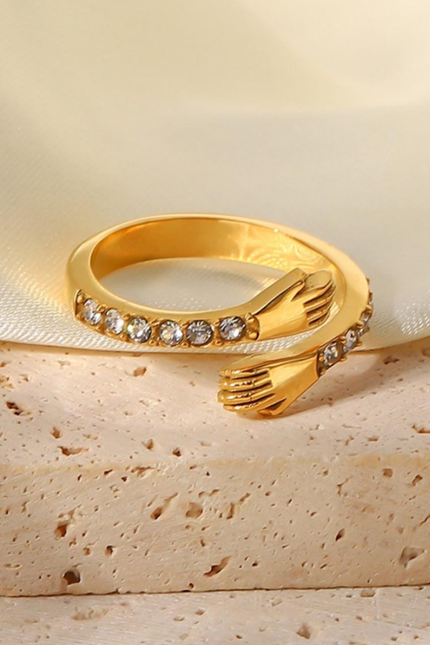 Ατσάλινο δαχτυλίδι hug με στράς.