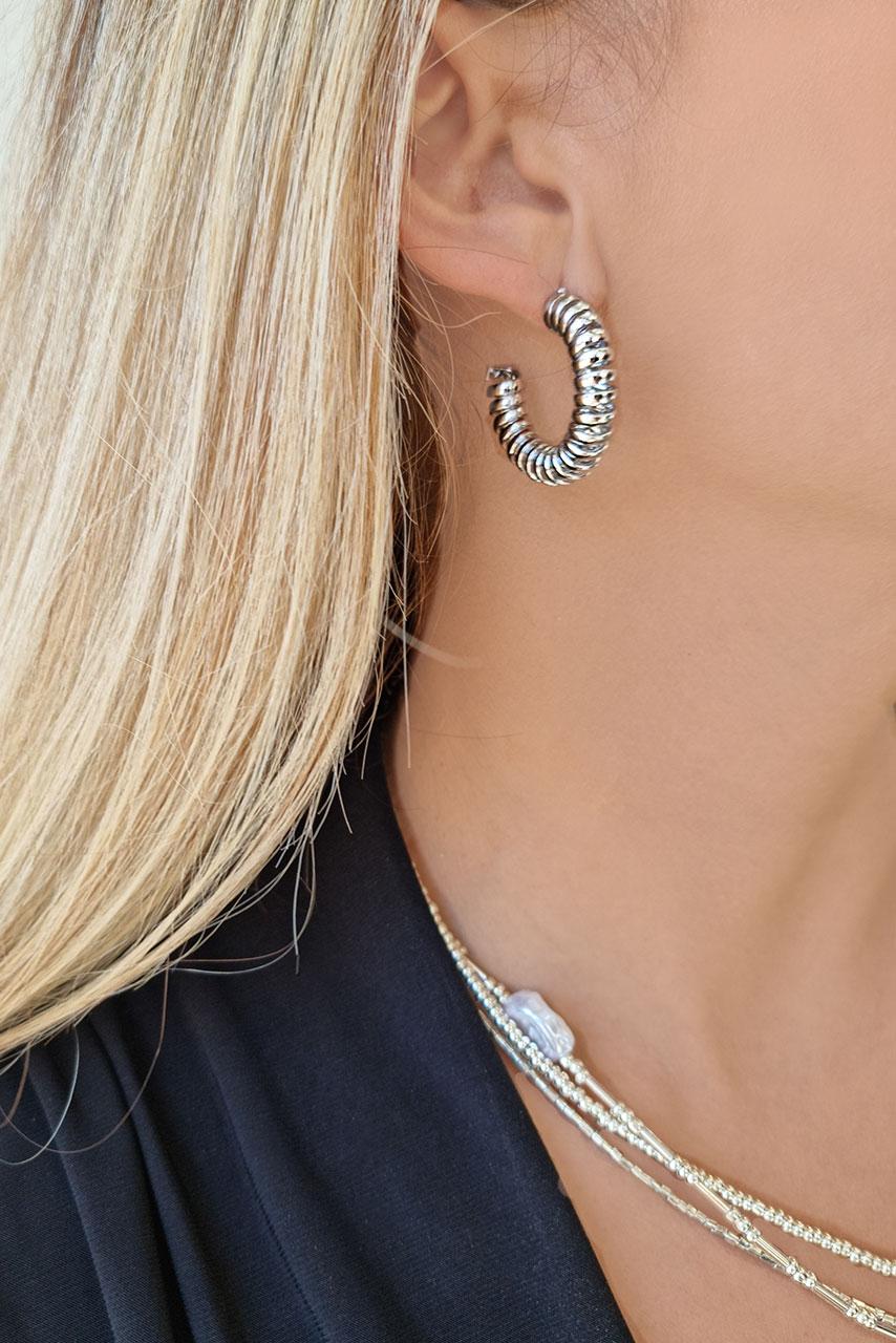 Funky disco twisted ασημί κρίκοι σε μικρό μέγεθος με κούμπωμα πίσω.