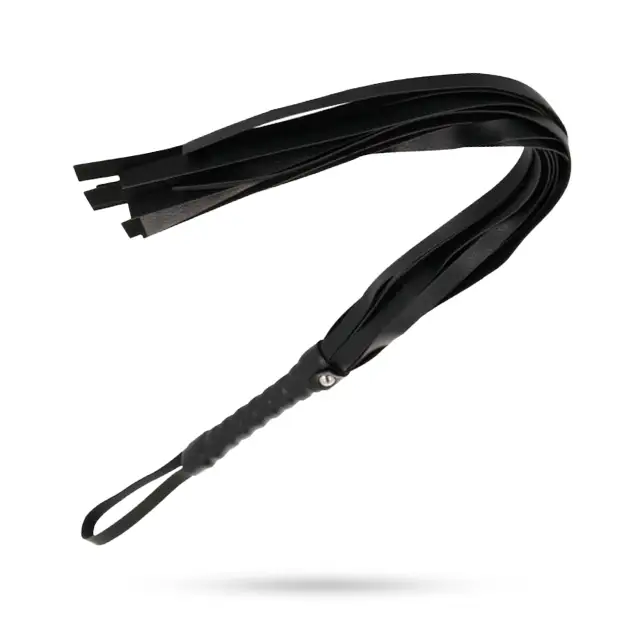 • Κομψό μαύρο bondage μαστίγιο για αισθησιακό BDSM παιχνίδι.