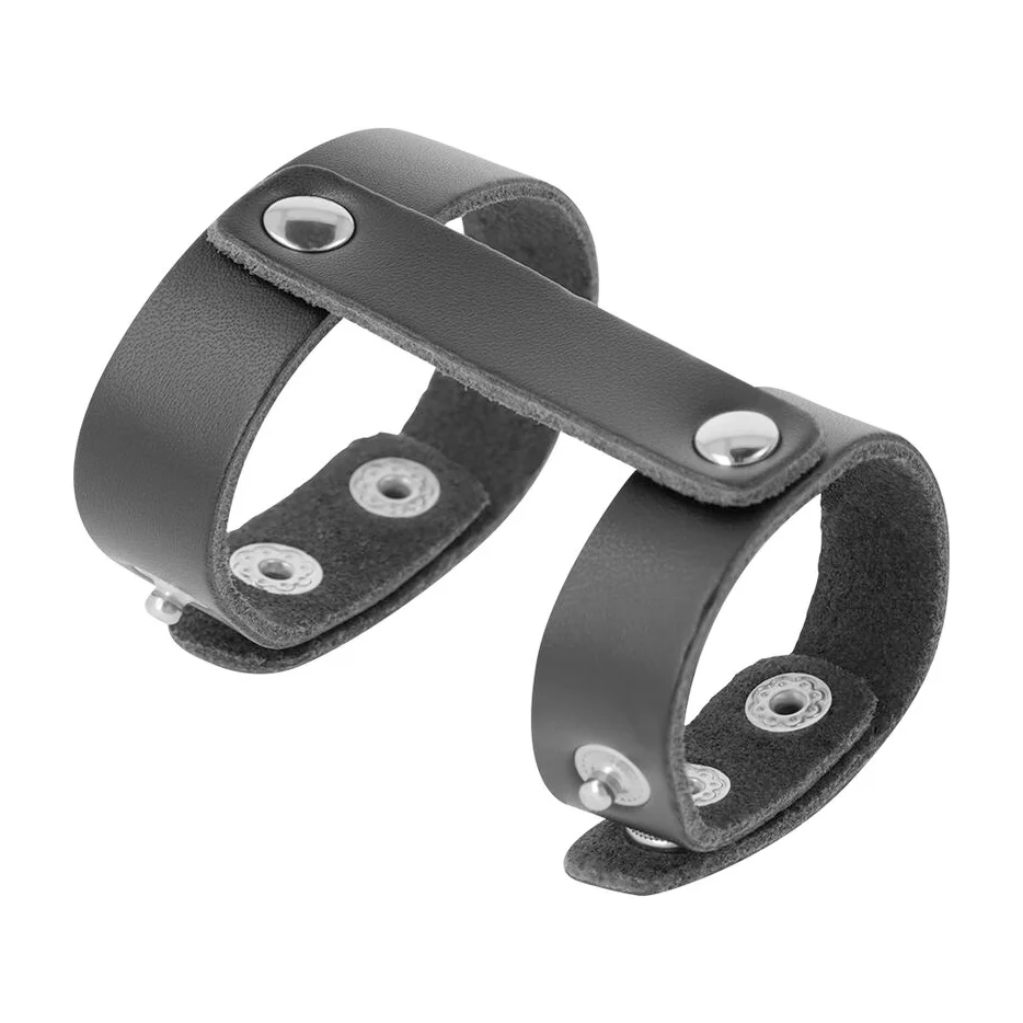 Διπλό δαχτυλίδι πέους και όρχεων από δερματίνη με ρυθμιζόμενο μέγεθος και brackets.