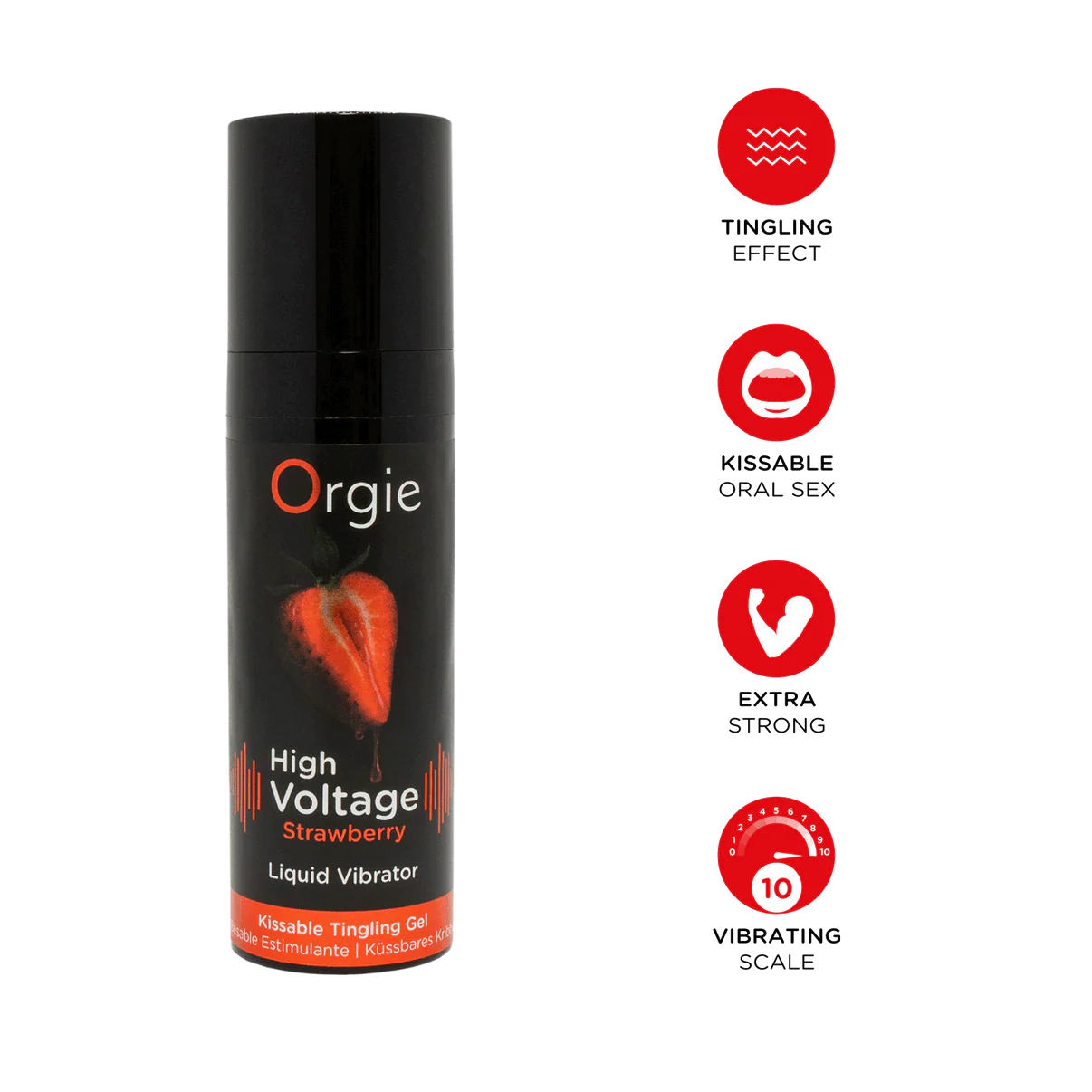 Το High Voltage Strawberry Liquid Vibrator είναι ένα υγρό διεγερτικό gel υψηλής έντασης, σχεδιασμένο για άμεση ενεργοποίηση των αισθήσεων και έντονη διέγερση των ερωτικών περιοχών. Περιέχει υψηλή συγκέντρωση δραστικού συστατικού προερχόμενου από την περιοχή του τροπικού δάσους του Αμαζονίου, γνωστό για το ισχυρό αίσθημα μυρμηγκιάσματος που προκαλεί.