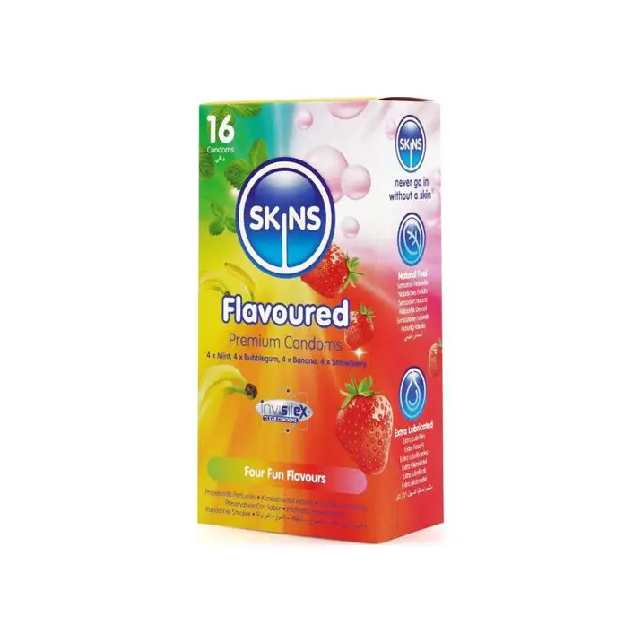 Δώσε γεύση και φαντασία στις πιο προσωπικές σου στιγμές με τα Skins Flavored Premium Προφυλακτικά. Σε αυτό το multipack των 4 τεμαχίων θα βρεις τέσσερις δελεαστικές επιλογές – μπανάνα, τσιχλόφουσκα, μέντα και φράουλα – για να απολαμβάνεις διαφορετικές εμπειρίες κάθε φορά.
