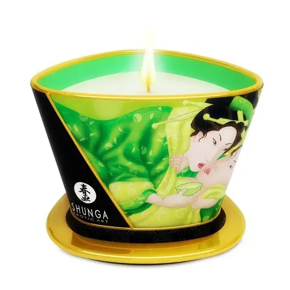 Το Shunga Green Tea Massage Candle είναι μια μοναδική εμπειρία αρωματοθεραπείας και ερωτικής απόλαυσης. Με άρωμα πράσινου τσαγιού, αυτό το αισθησιακό κερί λιώνει σε ένα ζεστό, ενυδατικό λάδι που απλώνεται εύκολα στο δέρμα, μετατρέποντας κάθε άγγιγμα σε τρυφερή, χαλαρωτική εμπειρία.