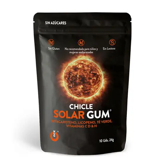 Οι SOLAR GUM από την WUG GUMS είναι το ιδανικό φυσικό συμπλήρωμα για όσους θέλουν να αποκτήσουν πιο γρήγορο, ομοιόμορφο και χρυσαφένιο μαύρισμα με απόλυτη ευκολία. Με εύγευστο τροπικό άρωμα, χωρίς ζάχαρη, γλουτένη ή λακτόζη, και σε πρακτική μορφή τσίχλας.