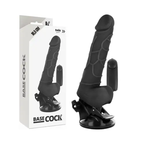 Ρεαλιστικός δονητής BASECOCK 18,5 cm με τηλεχειρισμό, ισχυρές δονήσεις και βάση βεντούζας, από TPE και ABS.