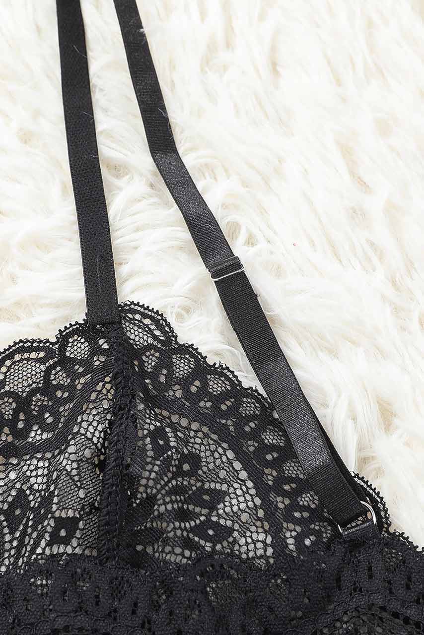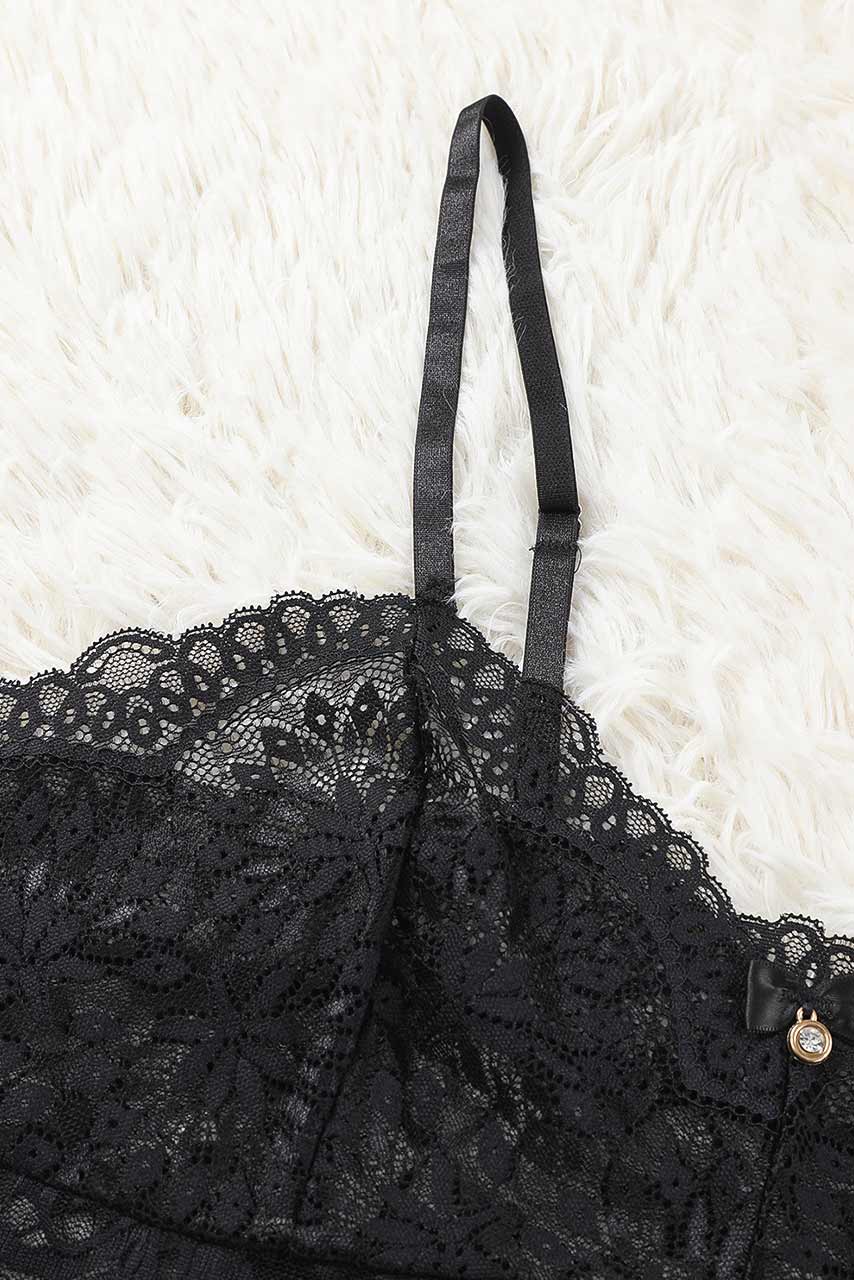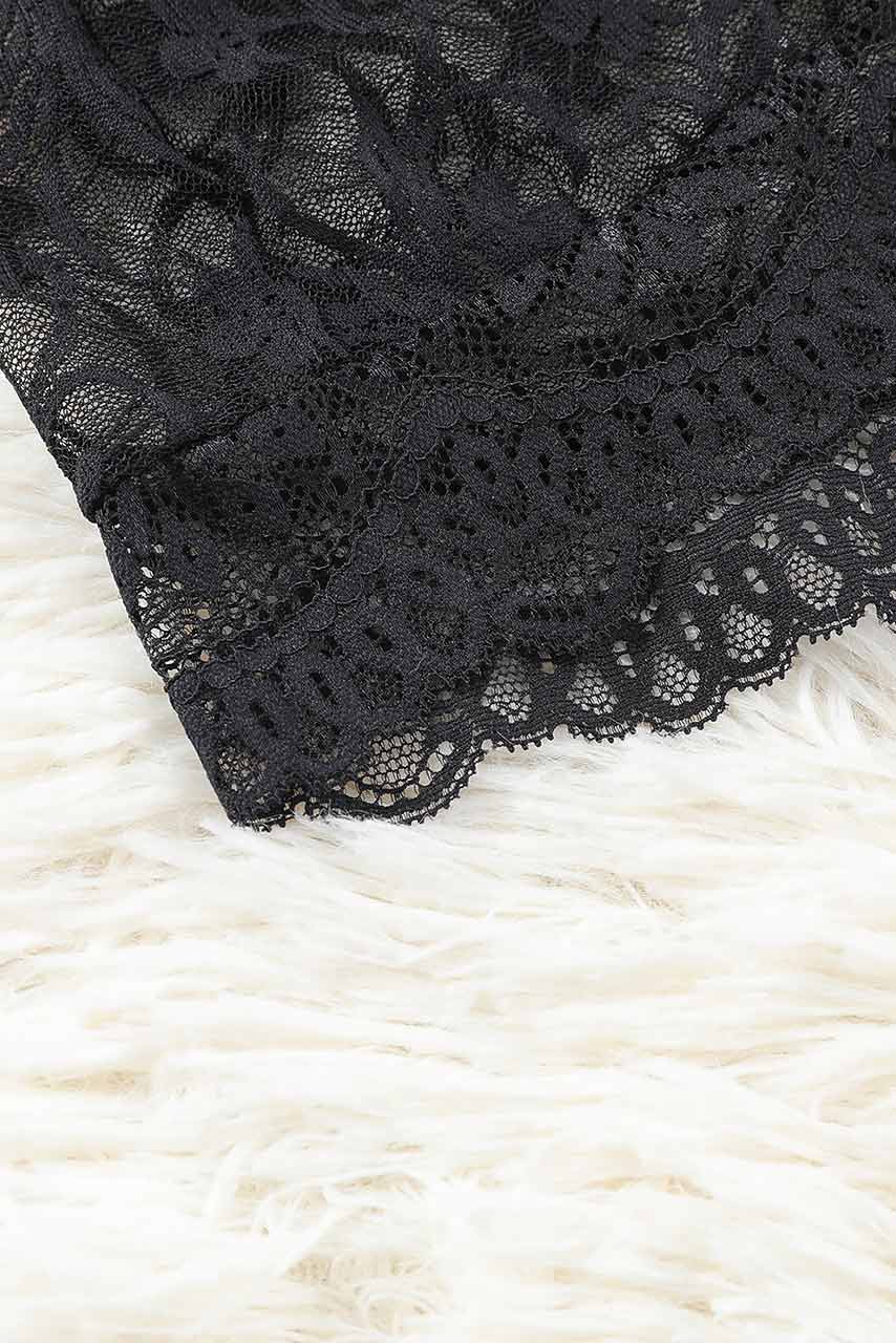 Μαύρο see-through babydoll με ενσωματωμένο bralette φλοραλ δαντέλα all over και σκίσιμο στο πλάι.