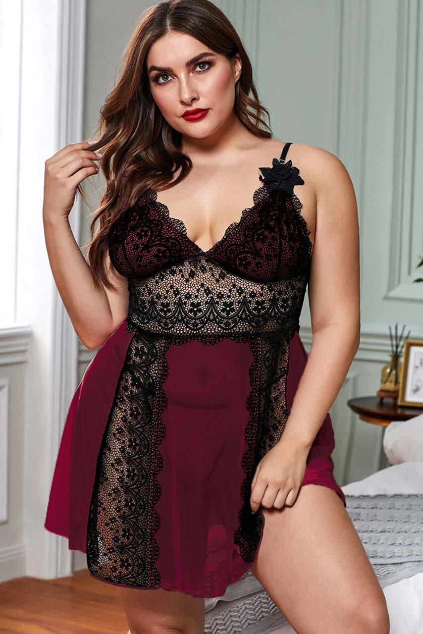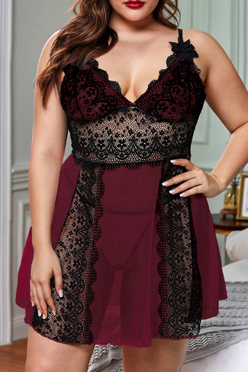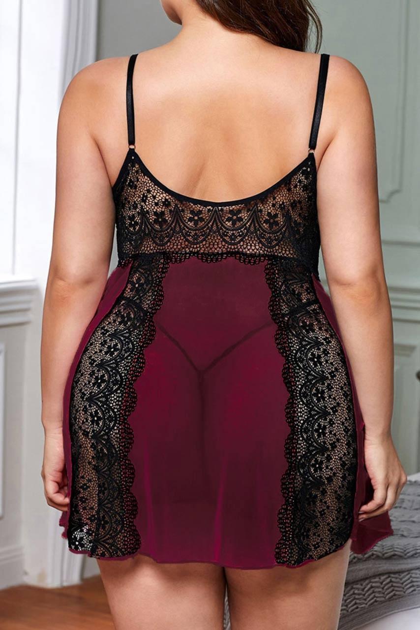 Sexy και ρομαντικό μίνι hollow out δαντελένιο babydoll σε μπορντό χρώμα. Οι τιράντες είναι ρυθμιζόμενες, έχει επένδυση στο στήθος και βγαίνει από XL νουμεράκι μέχρι 5XL.