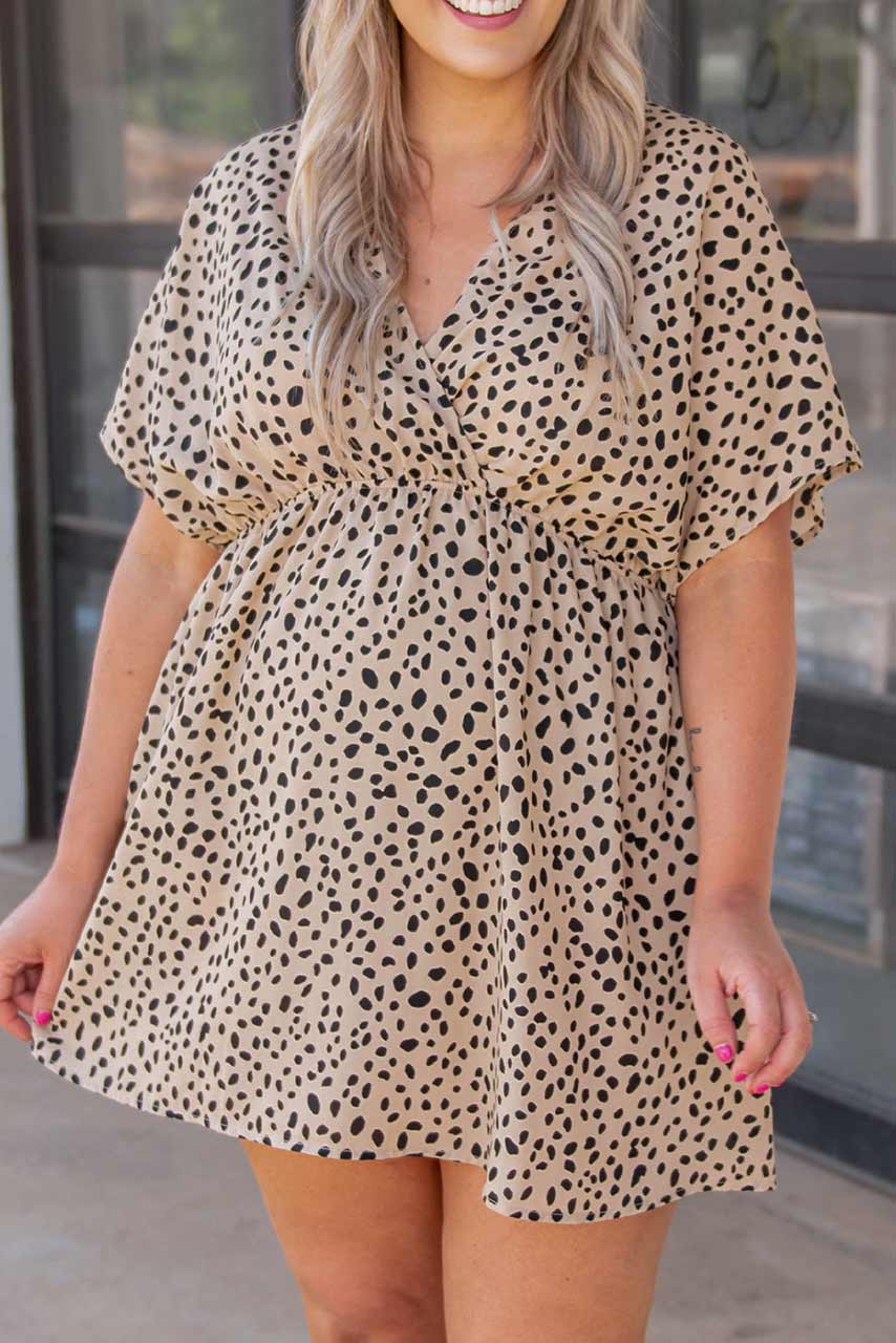 Μίνι animal print φόρεμα με ελαστικό λάστιχο στην μέση. Είναι κρουαζέ στο στήθος με βαθύ ντεκολτέ. Άνετο και στυλάτο για τις καλοκαιρινές σου βόλτες και βγαίνει από XL νουμεράκι μέχρι 3XL.