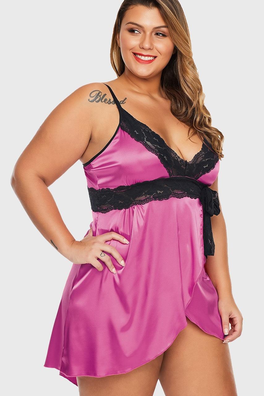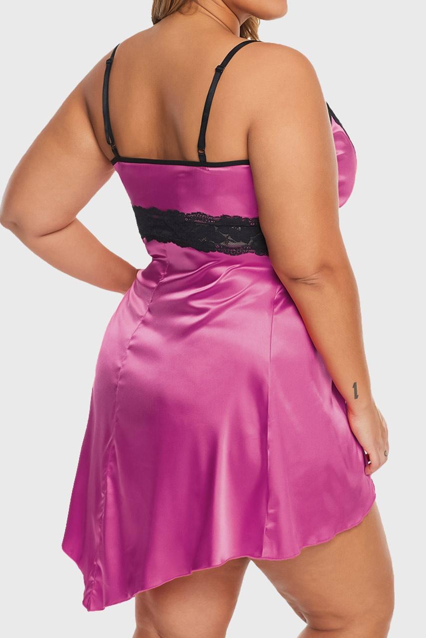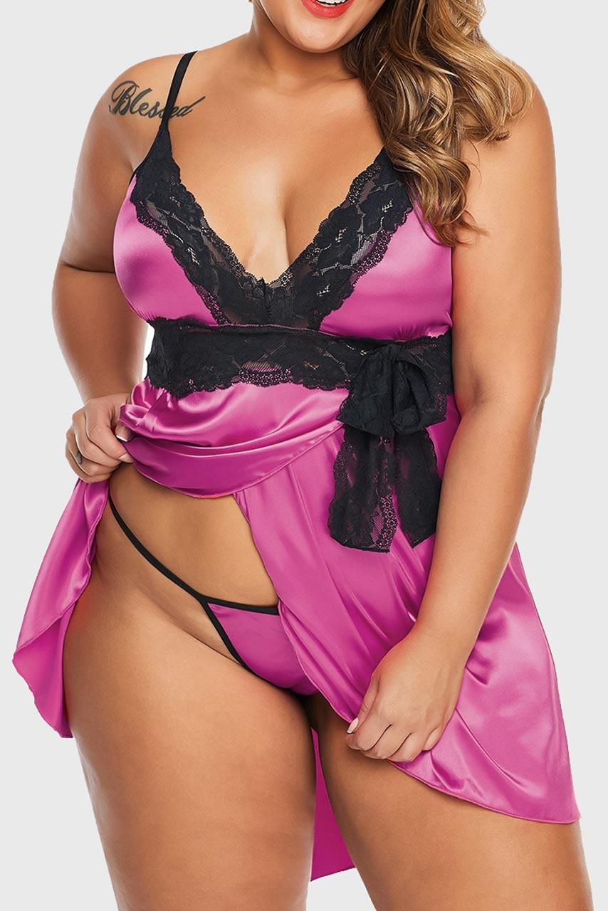 Φούξια σατέν plus size lingerie σετ Φούξια σατέν plus size lingerie σετ
