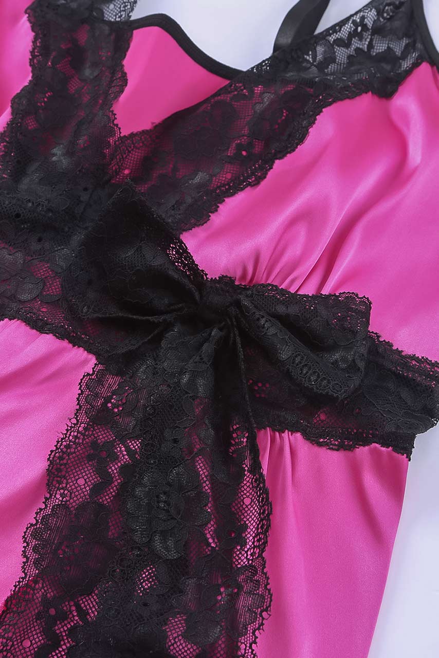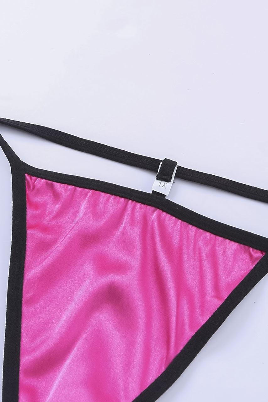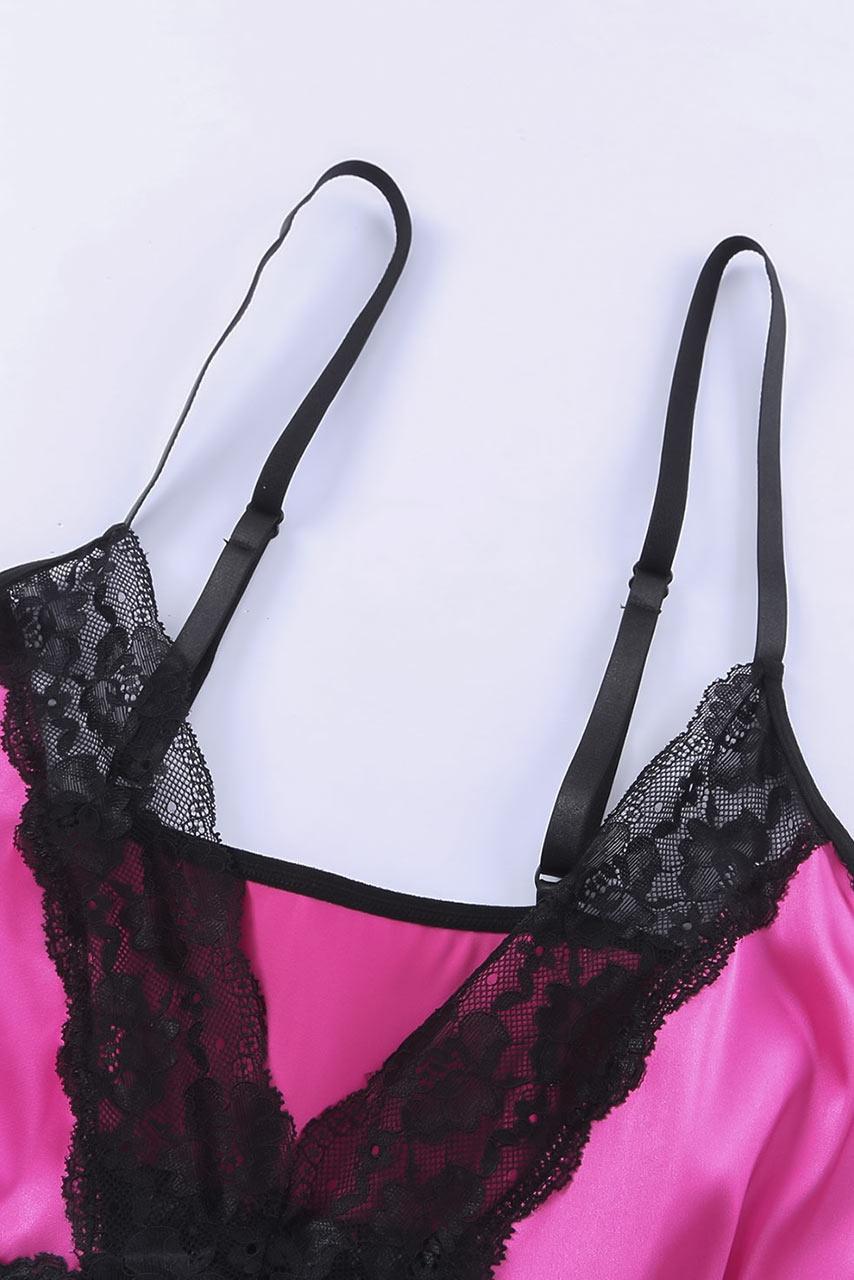 Φούξια σατέν plus size lingerie σετ Φούξια σατέν plus size lingerie σετ