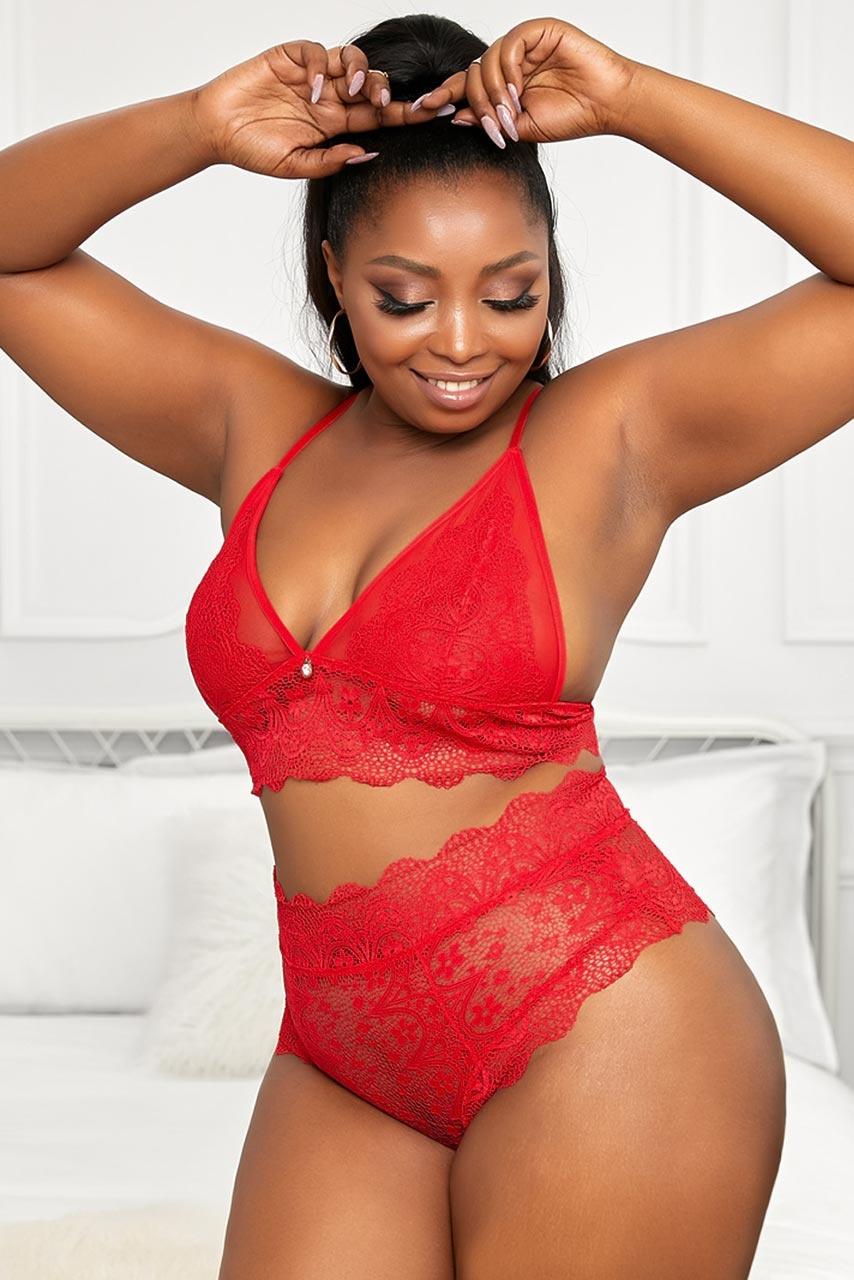Plus size κόκκινο δαντελωτό corset σετ