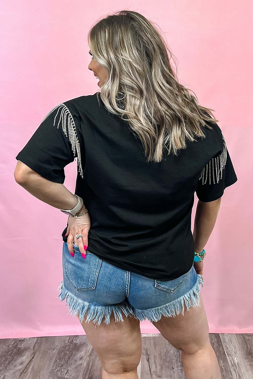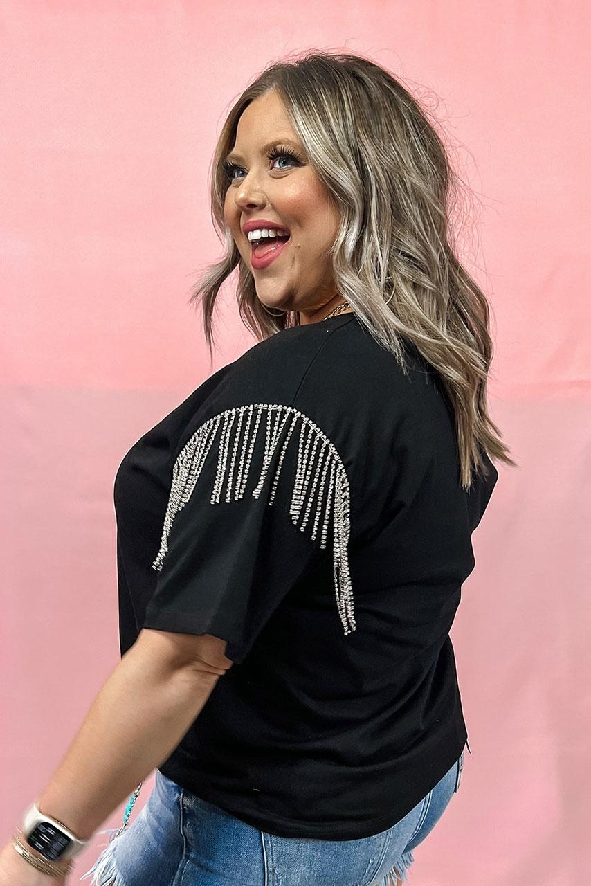 T-shirt με κρόσσια στράς
