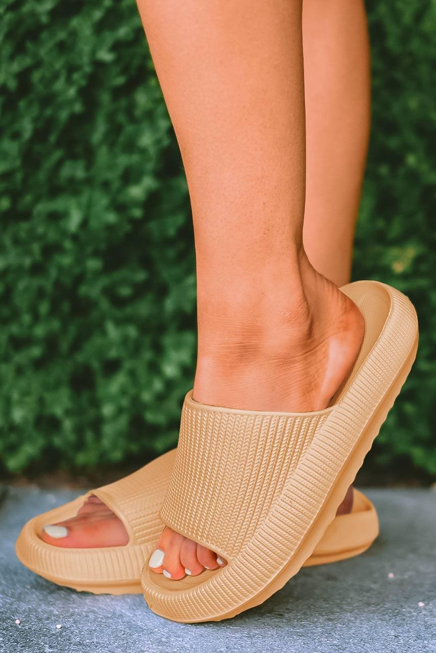 Το απόλυτο trend της σεζόν, casual μονόχρωμες slider παντόφλες με χοντρή ανάλαφρη σόλα, φαρδιά trendy φάσα, ανάγλυφο σχέδιο και hollow out σε μπεζ απόχρωση. Θα σας συνοδέψουν σε όλες τις βόλτες σας στην παραλία και όχι μόνο!