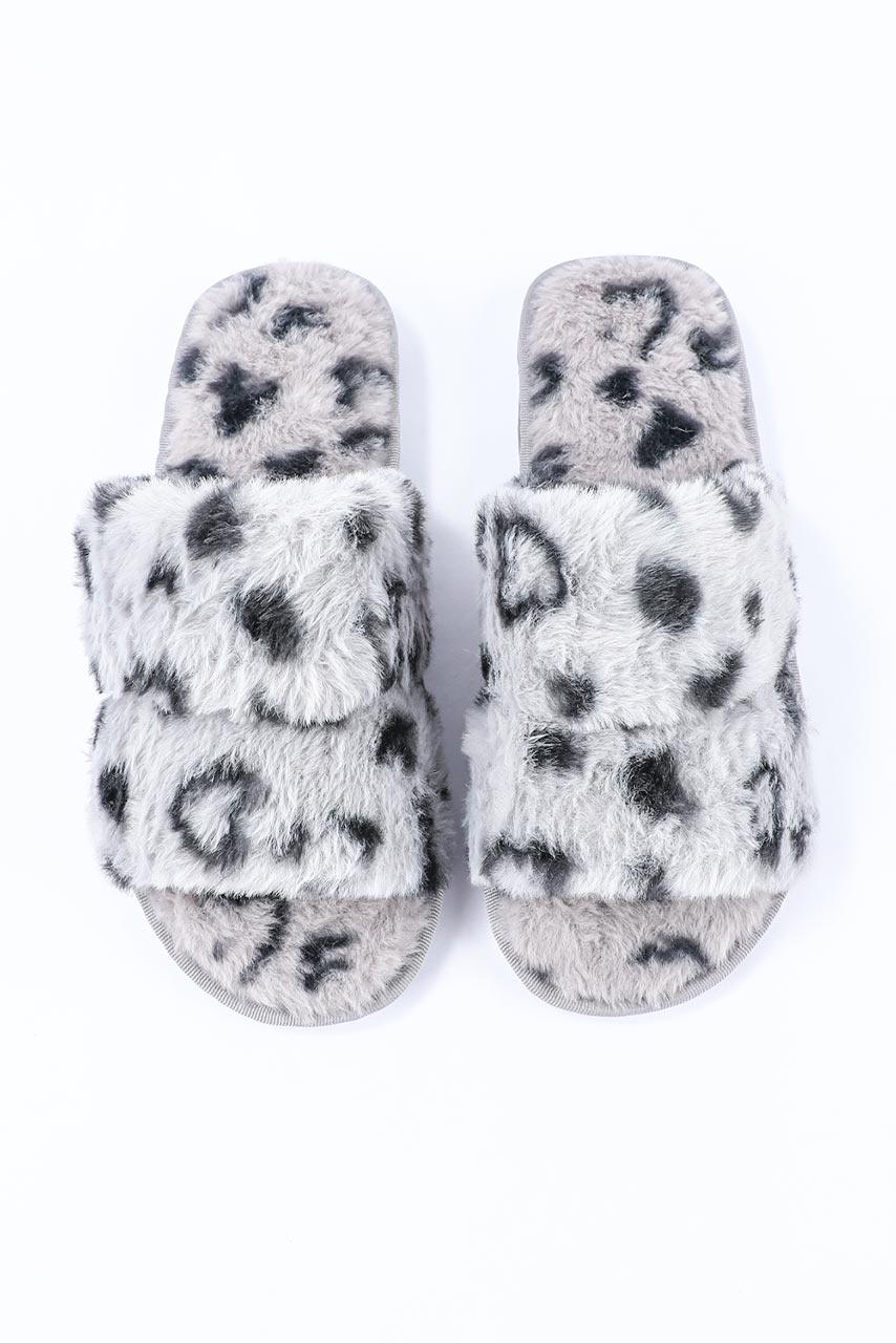Peep Toe γκρί λέοπαρ παντόφλα