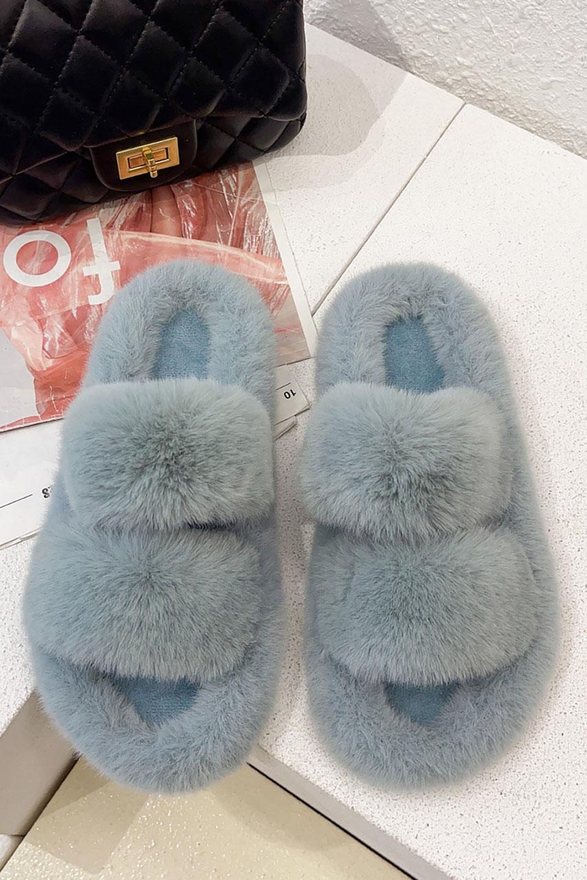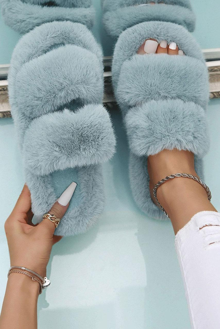 Cozy n comfort faux fur παντόφλες από οικολογική γούνα σε γαλάζια απόχρωση.