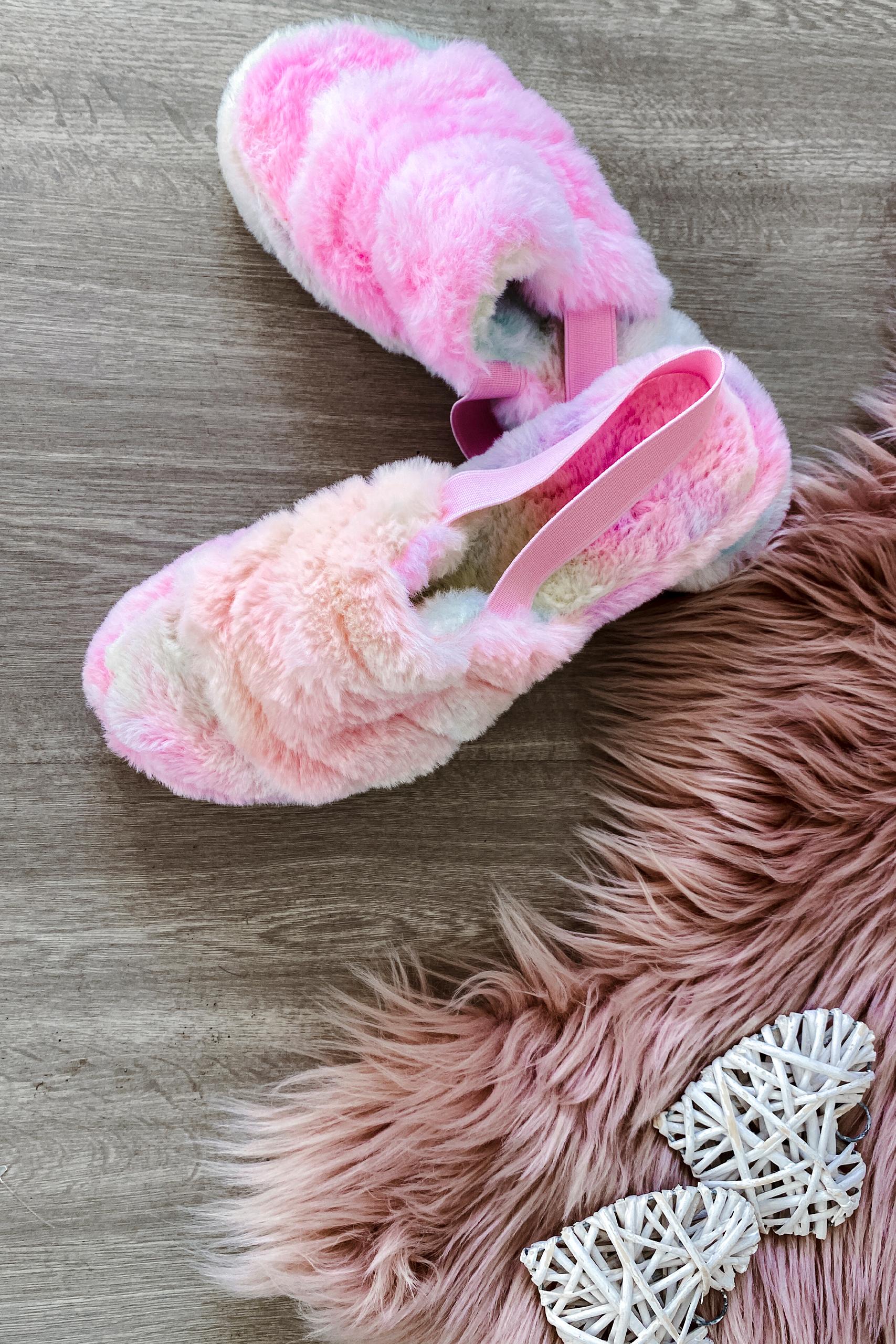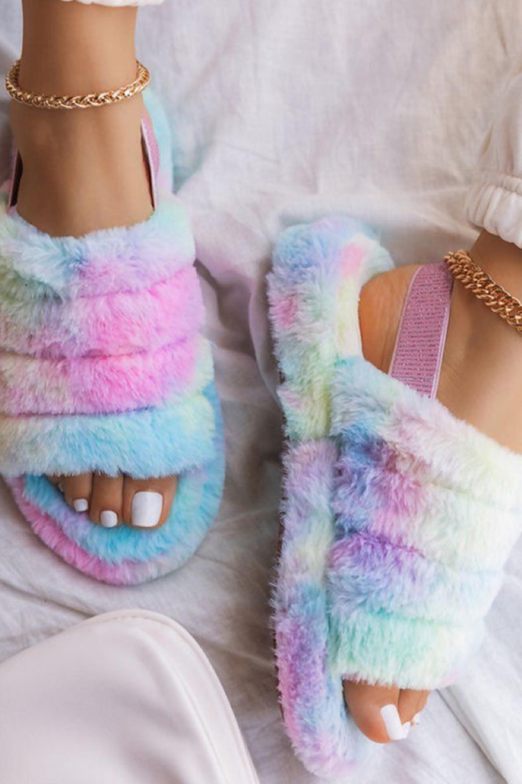 Cozy n fluffy sliders σε tie dye pattern με λάστιχο στο πίσω μέρος.