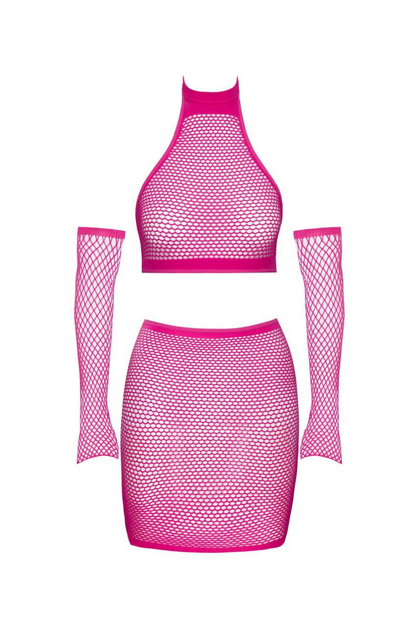 Hot Pink σε Hot Style! Αυτό το φούξια δίχτυνο σετ από τη συλλογή Cottelli FANTASY περιλαμβάνει crop top, μίνι φούστα και μανίκια. Το απαλό και ελαστικό δίχτυ αγκαλιάζει το σώμα και εφαρμόζει σαν δεύτερο δέρμα, προσφέροντας μια σαγηνευτική και άνετη εμφάνιση.