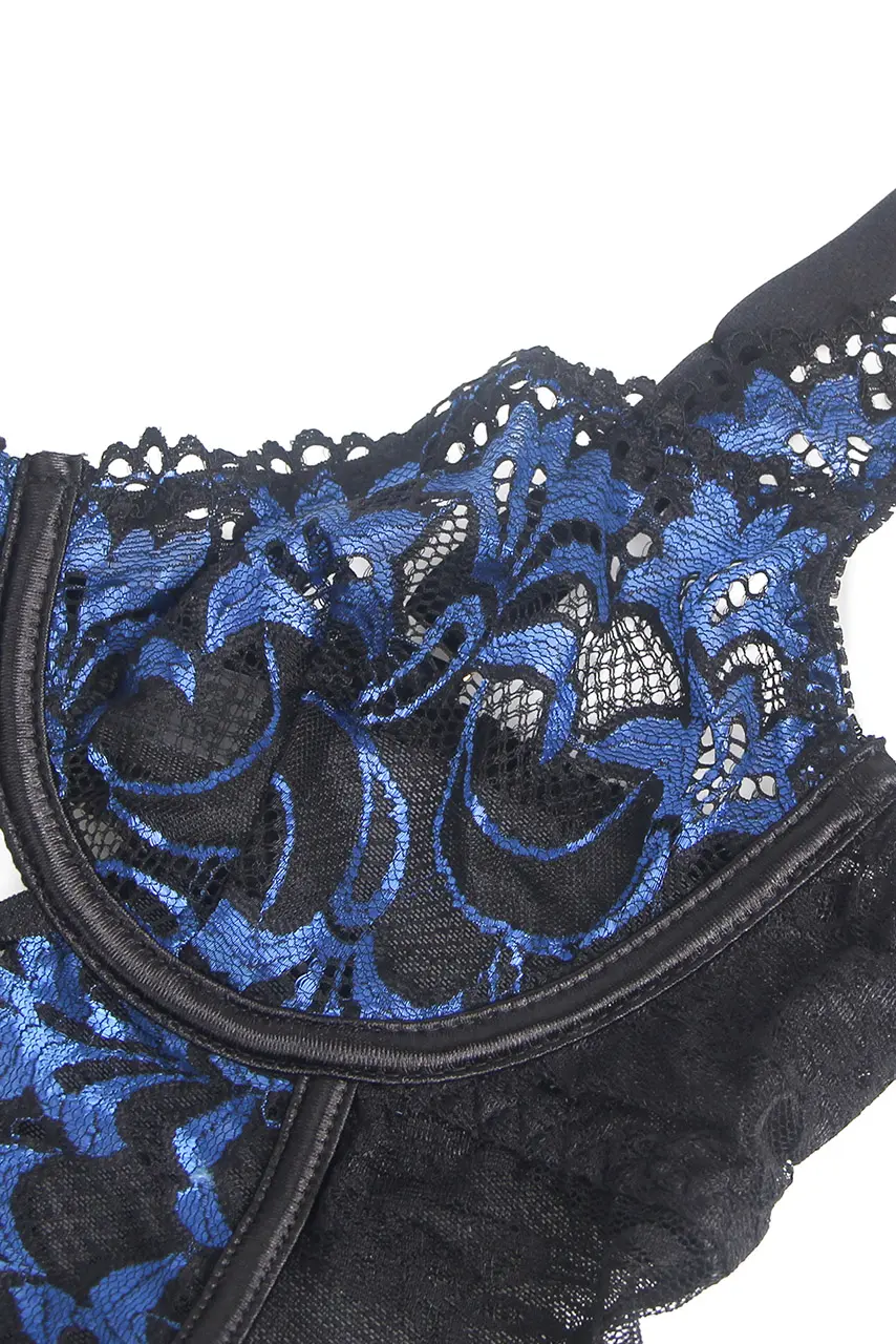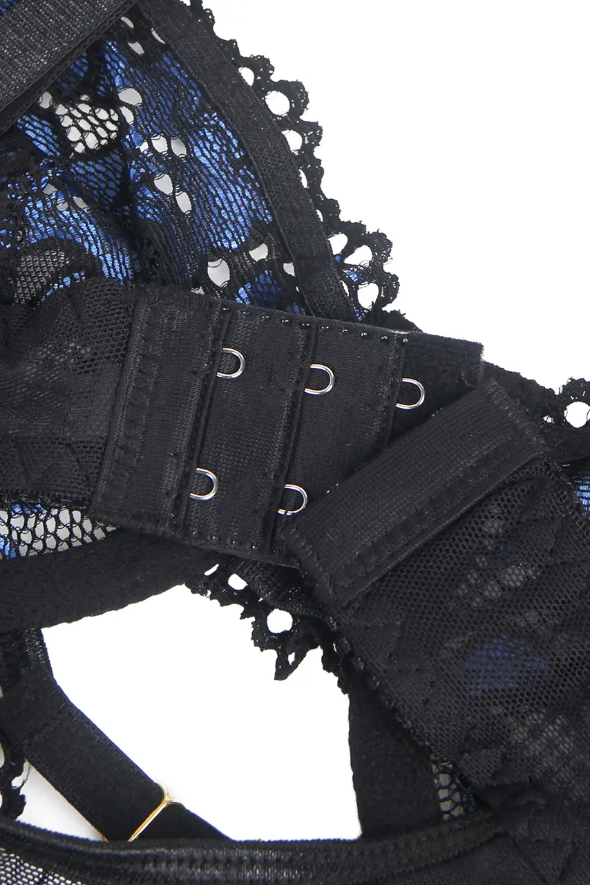 Garter lingerie set με βασιλικό μπλε δαντέλα
