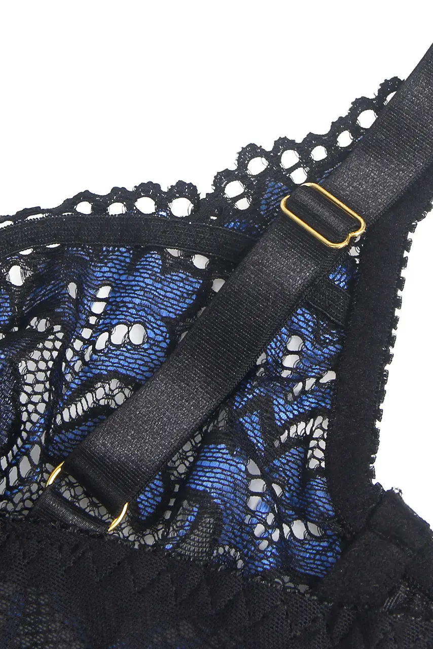 Garter lingerie set με βασιλικό μπλε δαντέλα Garter lingerie set με βασιλικό μπλε δαντέλα