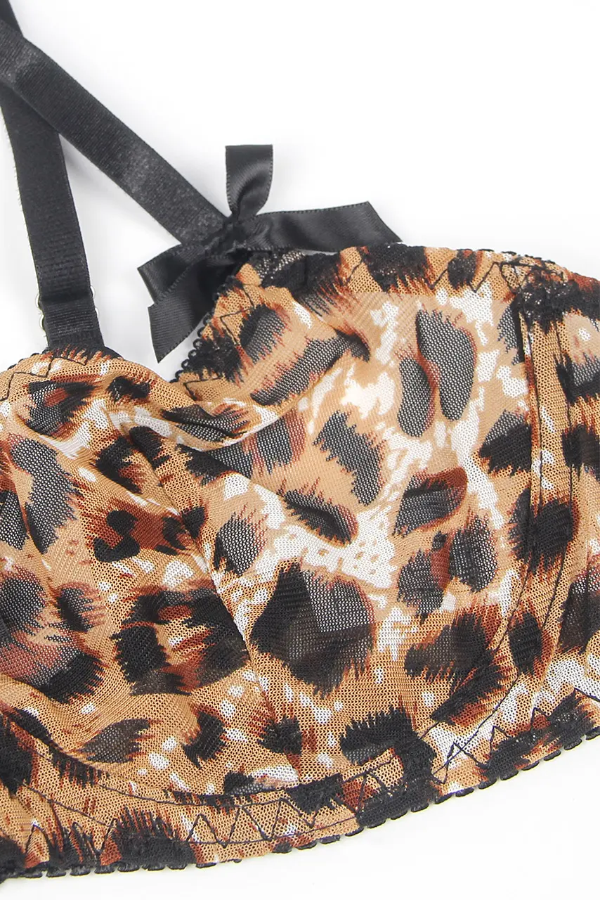 Το leopard print δίνει ένταση, ενώ οι bondage-inspired λεπτομέρειες με τα μαύρα straps αγκαλιάζουν τη μέση και τους μηρούς με τολμηρό ύφος. Ένα lingerie set για γυναίκες που ξέρουν τι θέλουν και δεν φοβούνται να το δείξουν.