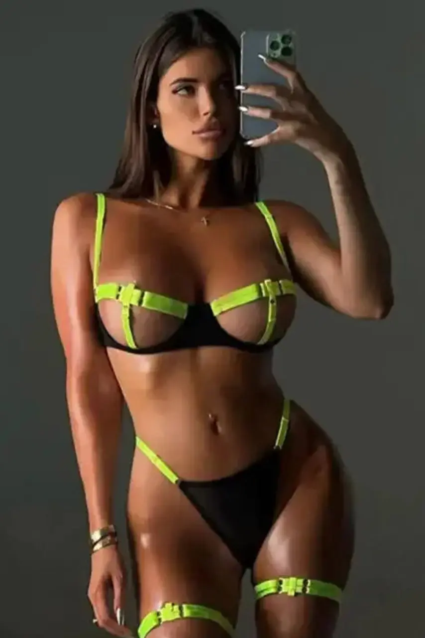Αποπλάνηση με pop χαρακτήρα. Το Sexy hollow strappy σετ lingerie είναι το απόλυτο sexy statement για κάθε γυναίκα που δεν φοβάται να ξεχωρίσει. Το σουτιέν με έντονα cut-outs και ρυθμιζόμενα neon λουράκια δημιουργεί ένα αισθησιακό cage-effect που τραβά τα βλέμματα.