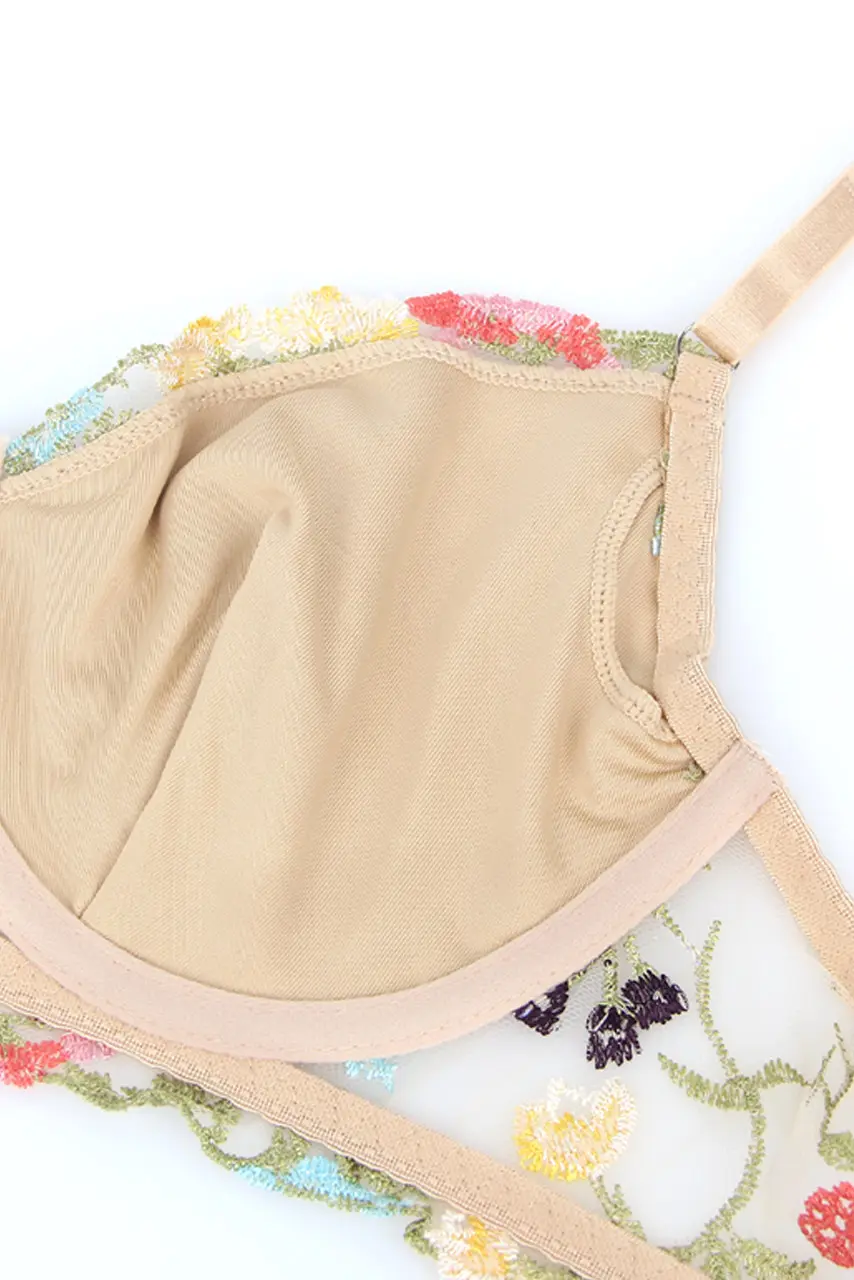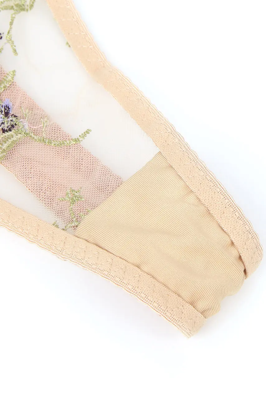 Η nude αισθητική βρίσκει την πιο ρομαντική της έκφραση σε αυτό το σαγηνευτικό μπεζ σετ εσωρούχων. Με ανάλαφρο τούλι και πολυτελή floral κέντημα, το συγκεκριμένο σετ προσφέρει κομψότητα και διακριτικό αισθησιασμό, ιδανικό για κάθε στιγμή που θέλεις να ξεχωρίσεις χωρίς υπερβολές.