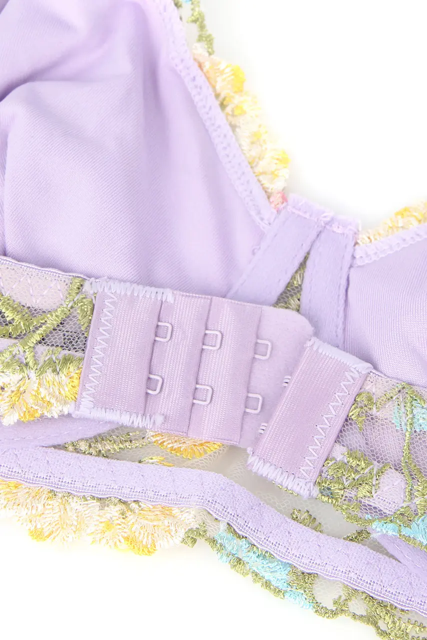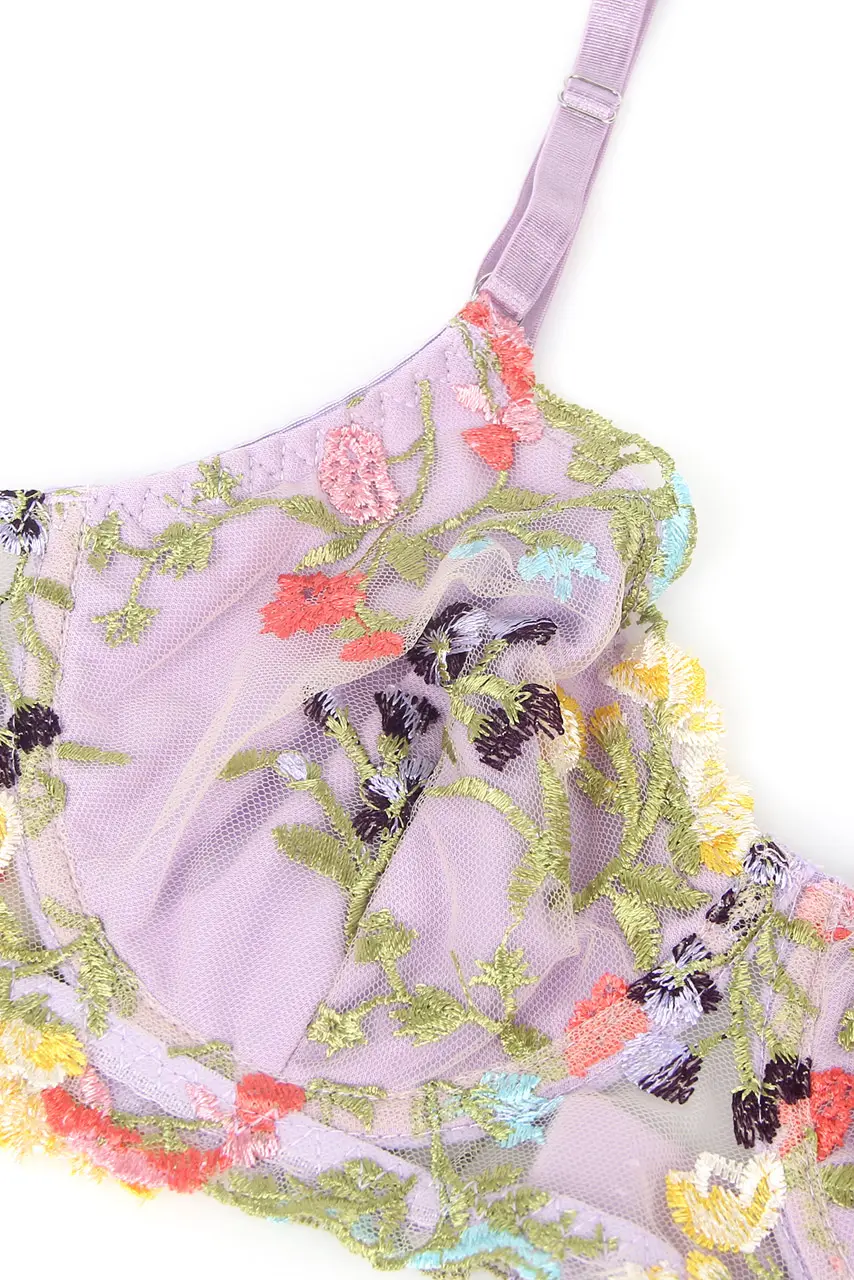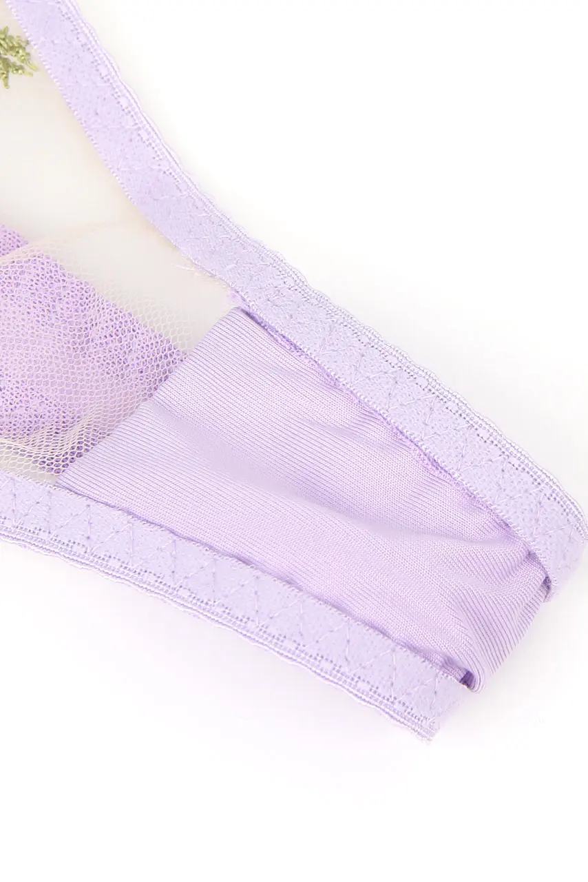 Απαλό, ρομαντικό και απίστευτα θηλυκό – το μοβ σετ εσωρούχων με λεπτομέρειες από πολύχρωμο floral κέντημα είναι μια στιλιστική ωδή στη ρομαντική θηλυκότητα. Η αίσθηση της λεβάντας συνδυάζεται αρμονικά με τις διάφανες επιφάνειες και τα εκλεπτυσμένα μοτίβα που θυμίζουν ανοιξιάτικο λιβάδι.