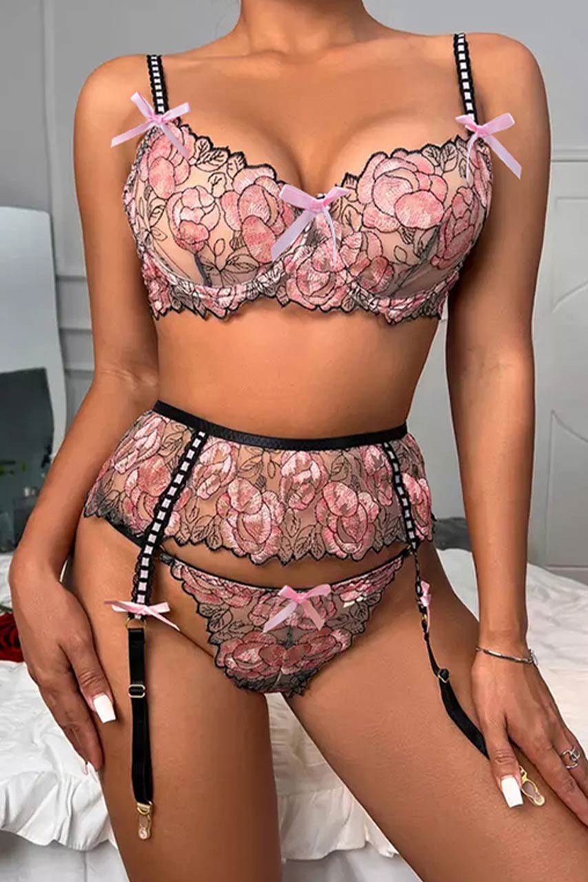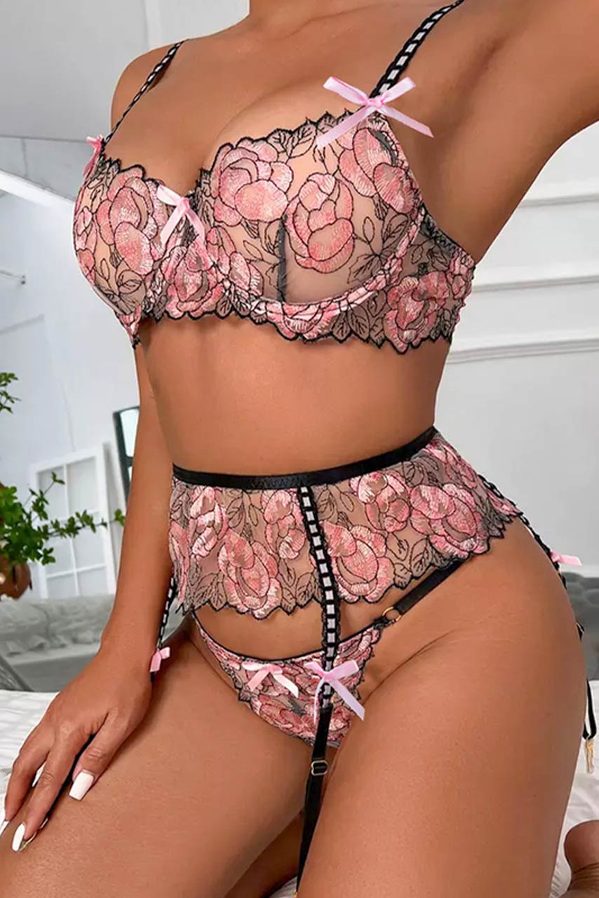 Σετ εσωρούχων με διαφάνεια και κεντημένα λουλούδια