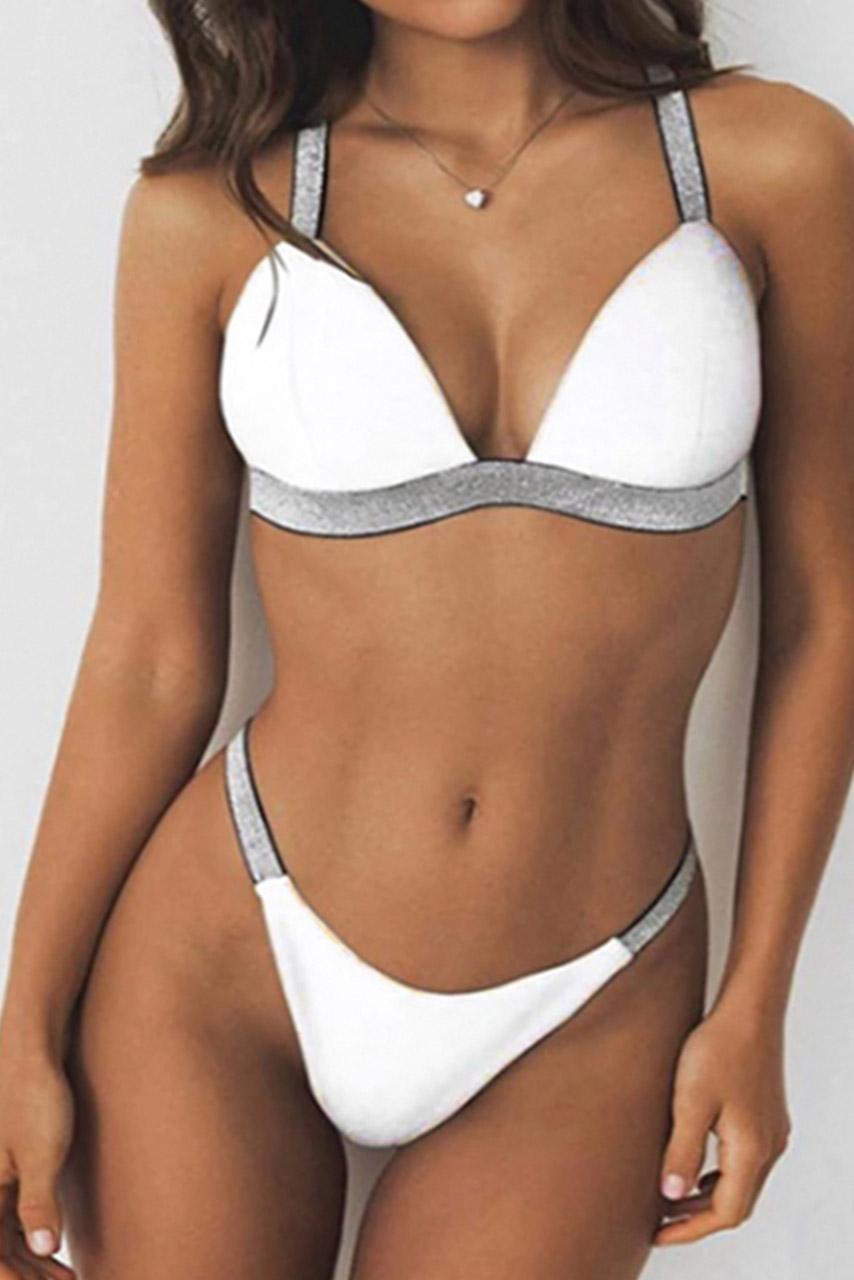 Bikini με lurex details σε λευκό και μαύρο χρώμα.