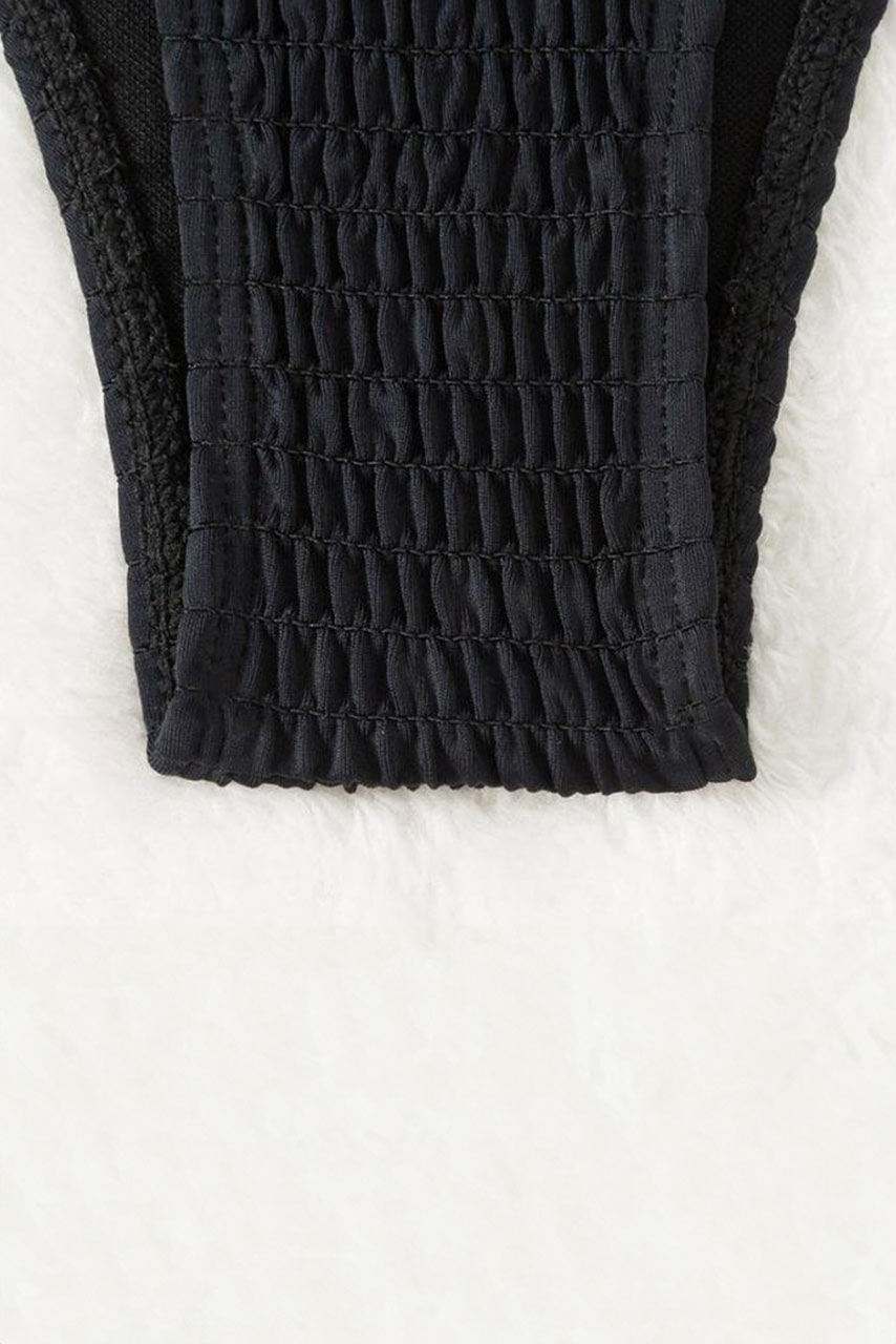 Μαύρο μαγιό μπικίνι γκοφρέ με άνοιγμα μπροστά