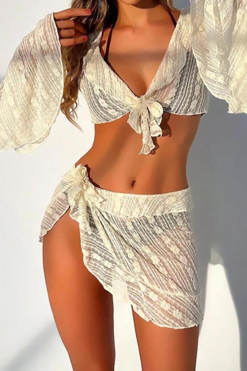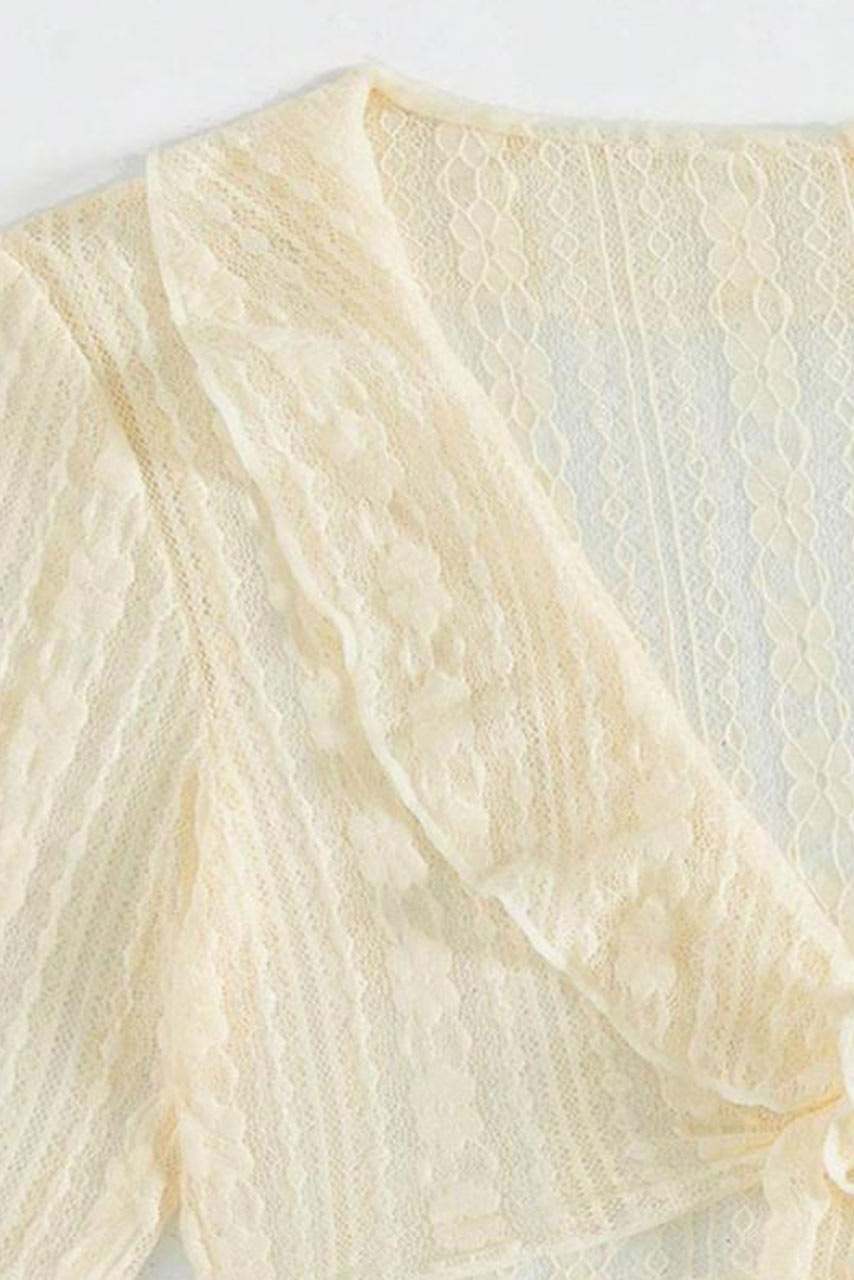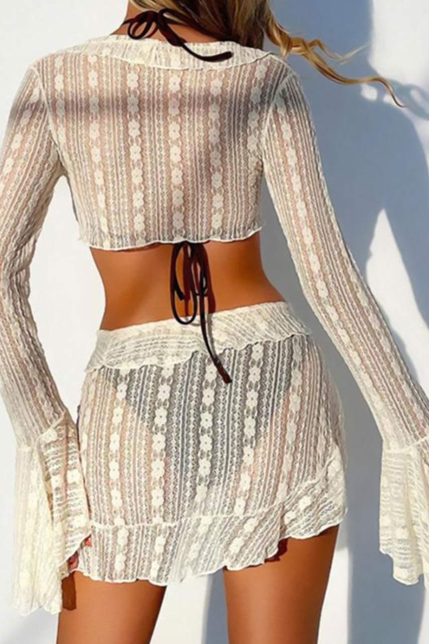 • Μακρυμάνικο καφτάνι crop παραλίας | Με δέσιμο και βολάν