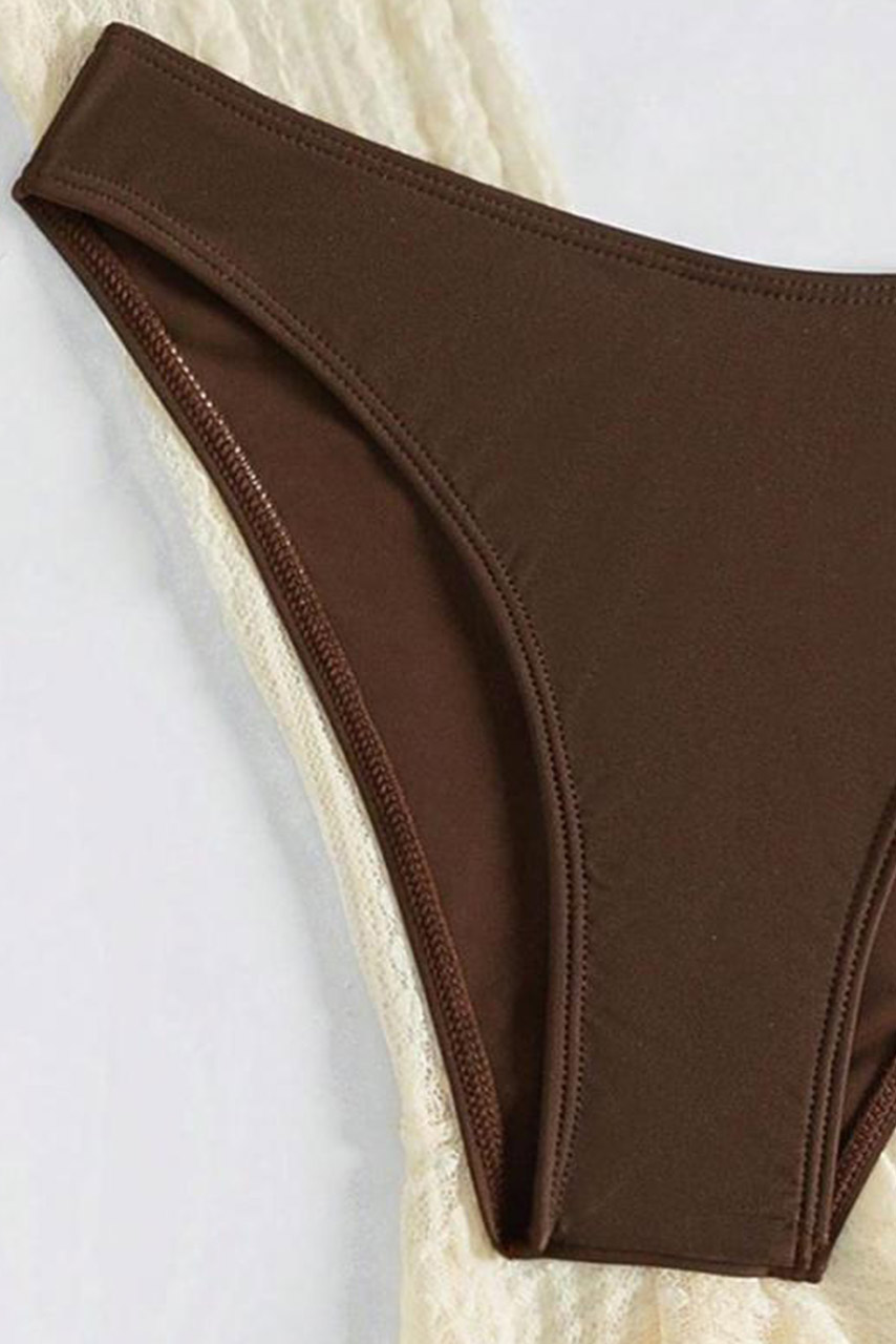 Καφέ μπικίνι μαγιό με σετ καφτάνι αέρινο