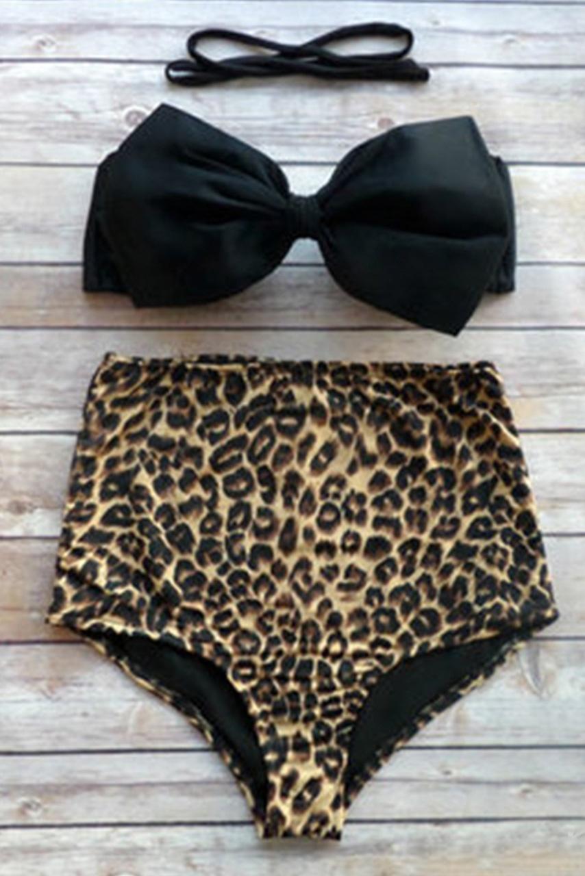 Λέοπαρ μπικίνι ρετρό με μαύρο τοπ και animal slip.