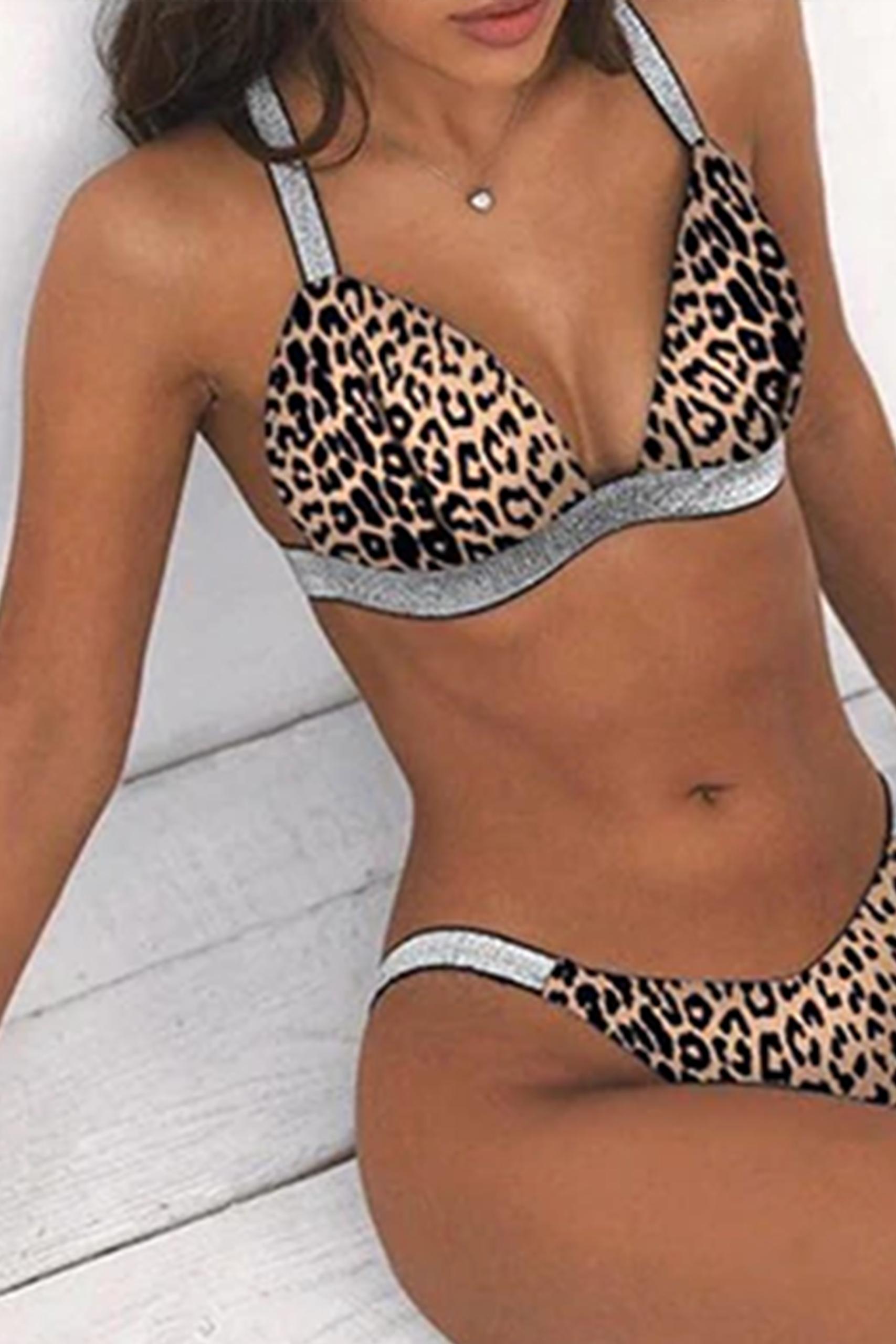 Animal print λεοπάρ pattern μπικίνι με ασημί μεταλιζέ ribbon 90s inspired.