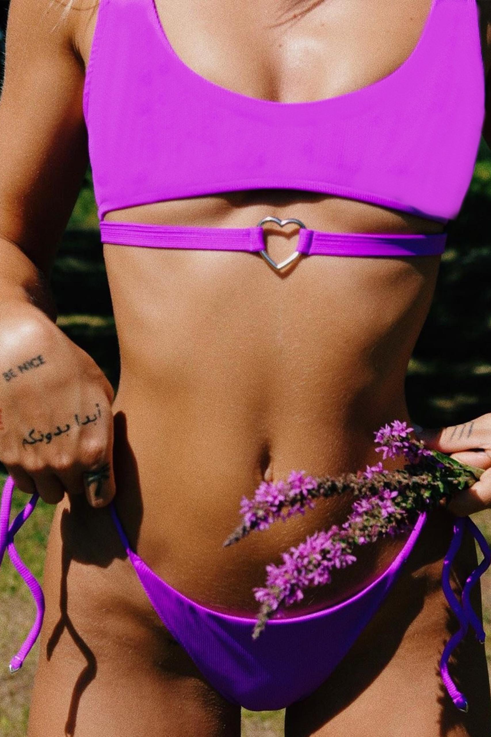 Μπικίνι σε δύο χρώματα με λεπτομέρεια ζωνάκι και αξεσουάρ καρδιά.