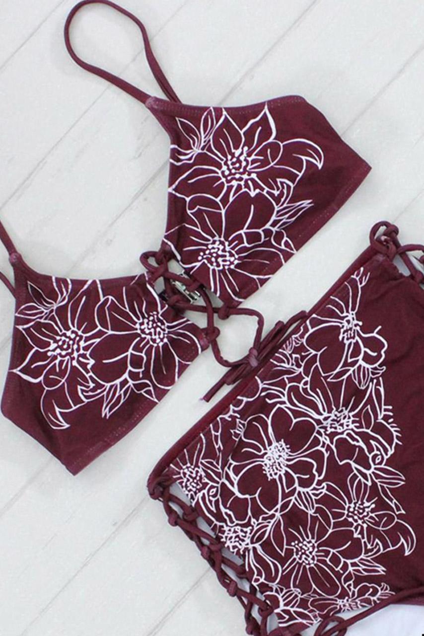 Η παραγγελία σου αποστέλλεται σε ουδέτερη, μη διαφανή συσκευασία, χωρίς ενδείξεις περιεχομένου. Μόνο εσύ γνωρίζεις τι περιλαμβάνει, με απόλυτο σεβασμό στην ιδιωτικότητά σου.Ψηλόμεσο μπικίνι με flower art σχέδιο σε μπορντώ χρώμα. Lace up details στο σλιπ και το τοπ. Στενή εφαρμογή