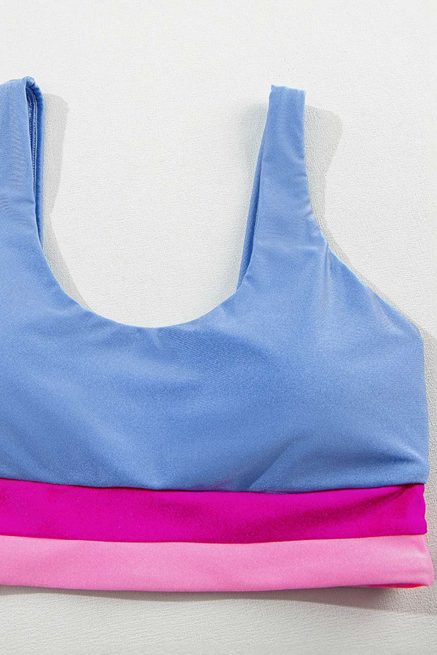 Athletic casual bikini σε τρίχρωμη ροζ-γαλάζια απόχρωση. Έχει χοντρές τιράντες και τετραγωνισμένη λαιμόκοψη.