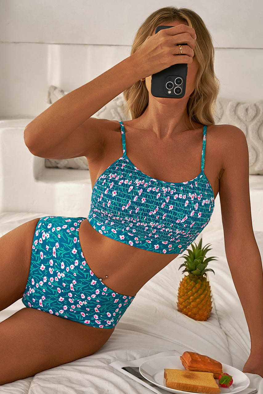 Μπλε floral μπικίνι με μπουστάκι σφηκοφωλιά