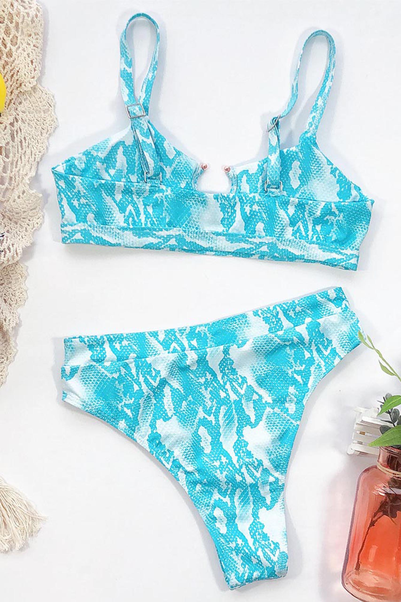 Τιρκουάζ μπικίνι σε snakeskin pattern με κρίκο on top.