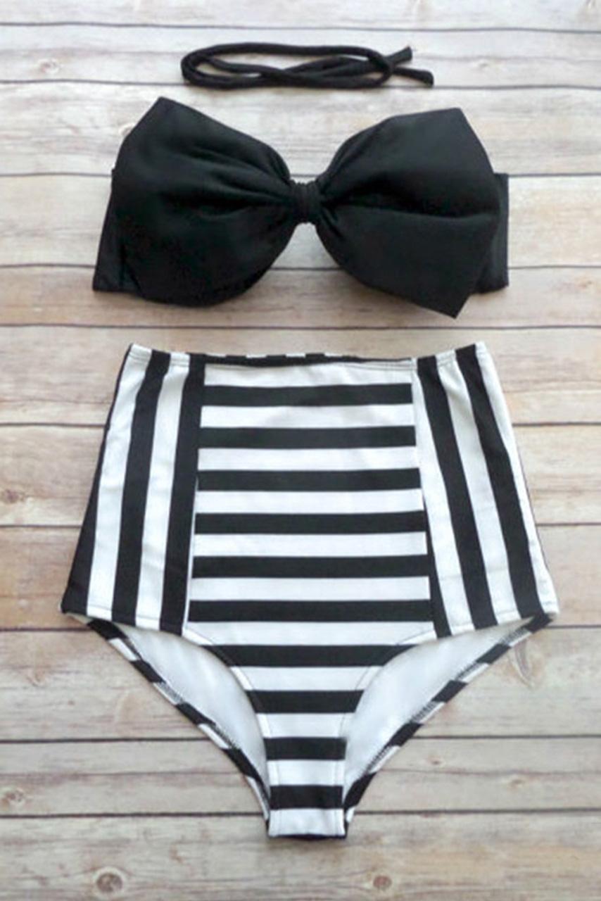 Retro ριγέ ψηλόμεσο μπικίνι σε διπλή απόχρωση.